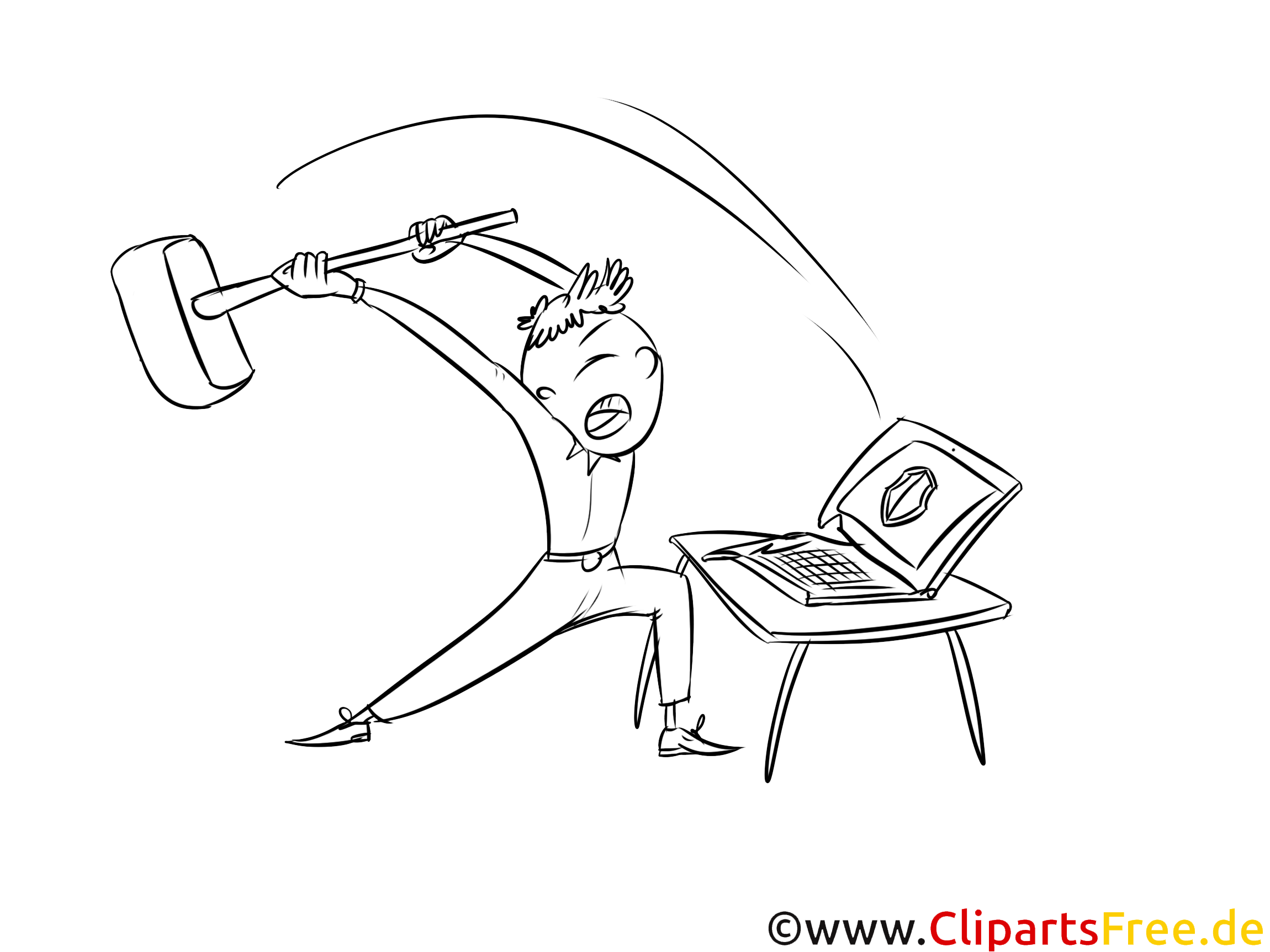 Verärgerter Nutzer Bild, Clipart, Illustration schwarz-weiß zum Ausmalen