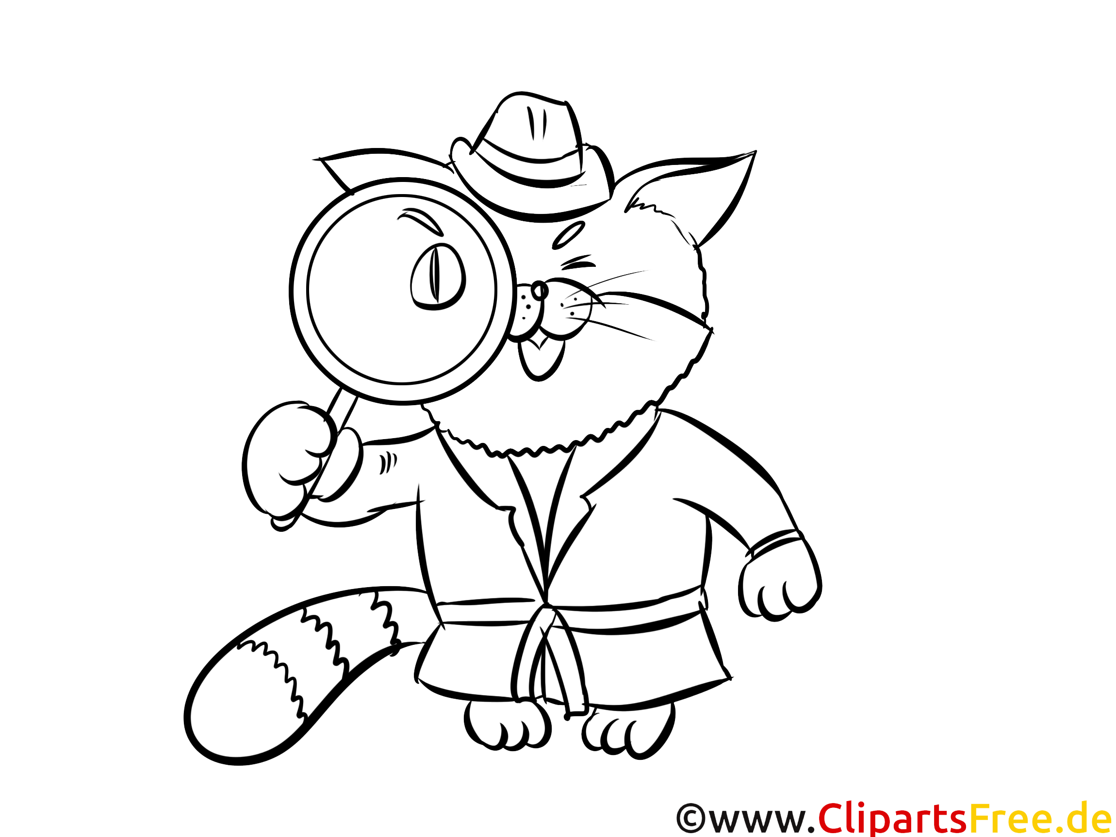 Katze Detektiv Bild, Clipart, Illustration zum Ausmalen kostenlos