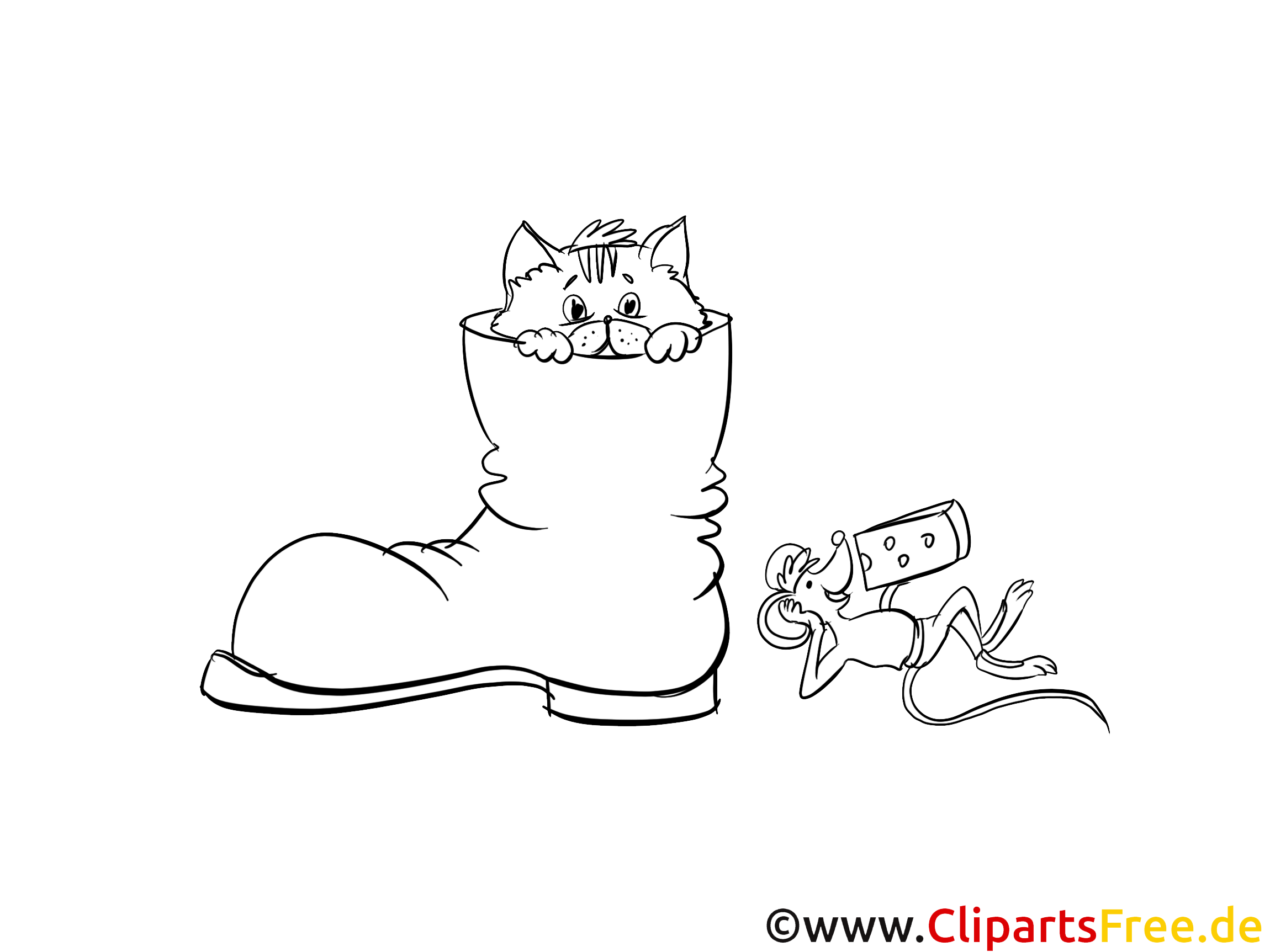 Katze im Schuh Ausmalbild zum Drucken und Ausmalen