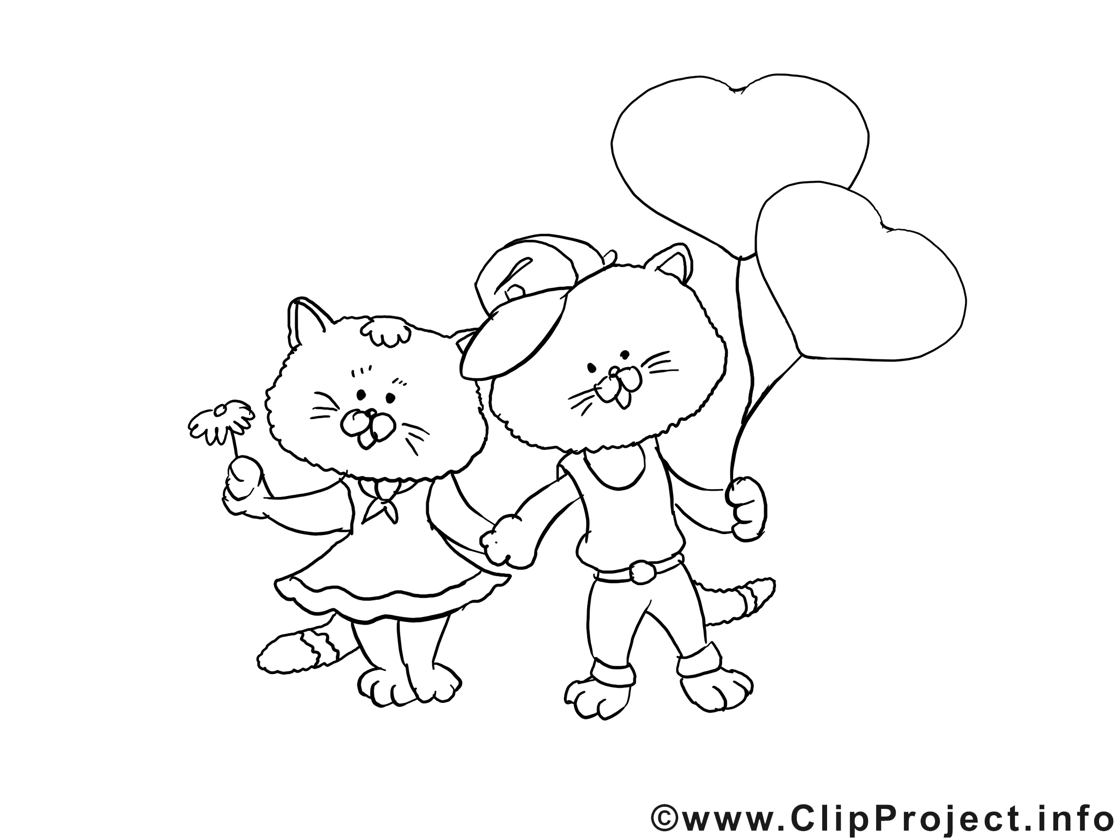 Das Ausmalbild zeigt zwei süße Katzen, die Hand in Hand fröhlich unterwegs sind. Die eine Katze trägt ein hübsches Kleid und hält eine kleine Blume! Die andere Katze, ein ganz cooler Typ, hat eine cap und prächtige Ballons in Herzform. Die beiden scheinen eine lange, abenteuerliche Geschichte miteinander zu haben. Man kann richtig spüren, wie viel Freude in der Luft liegt! Mittendrin im Bild sorgt die neutrale Hintergrundgestaltung dafür, dass die Katzen – und deren liebevolle Details – in den Vordergrund treten.