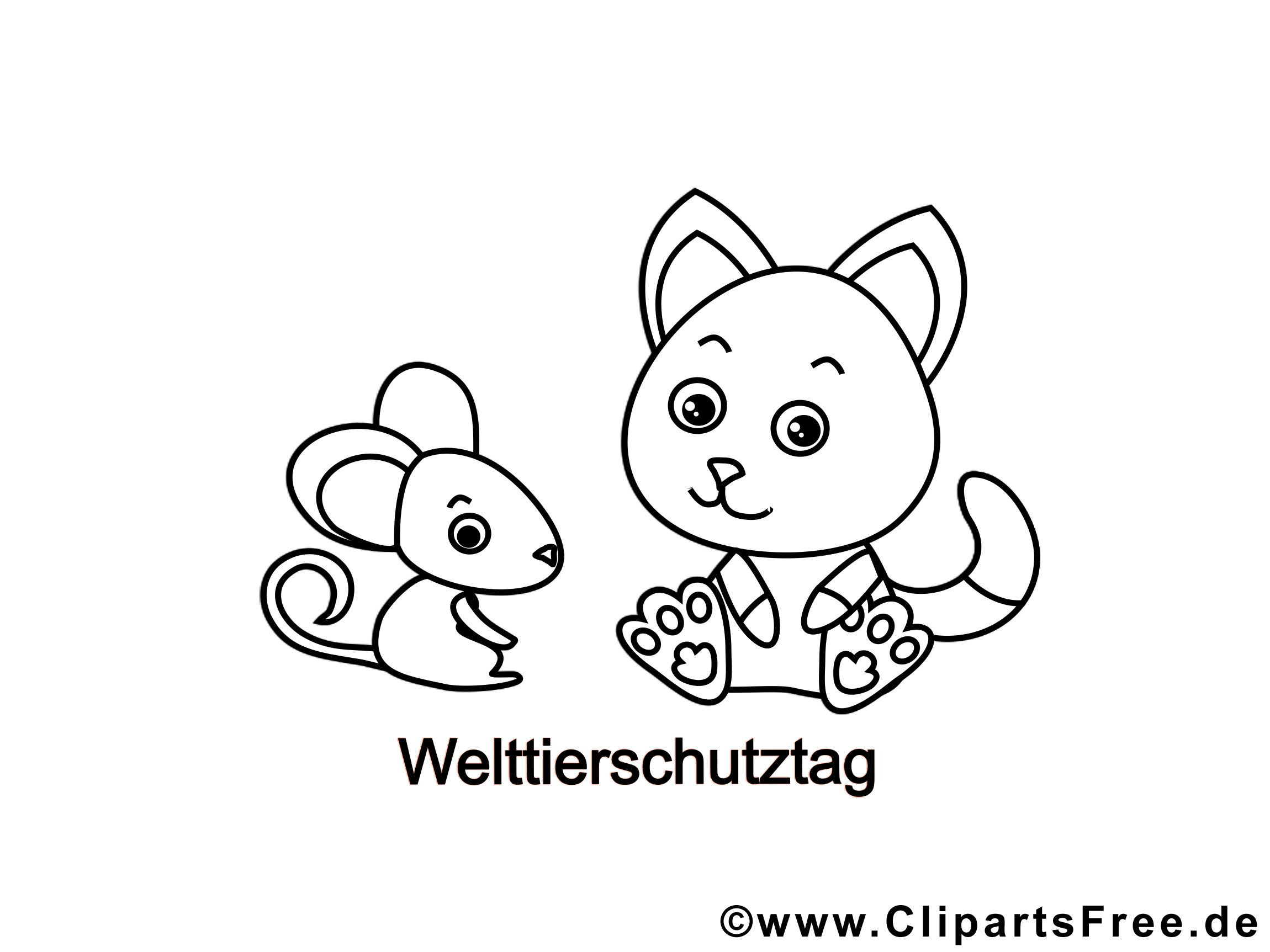 Auf diesem ausmalbild findet man zwei süße Tiere: eine kleine Maus und eine fröhliche Katze, die zusammen auf dem Bild sitzen. Die Maus hat verspielte, große Ohren und einen lustigen, gewundenen Schwanz. Die Katze, mit ihrem runden Gesicht und den großen Augen, wirkt ganz anhänglich und neugierig. In der Mitte steht „Welttierschutztag“ – der perfekte Anlass, um sich um unsere tierischen Freunde zu kümmern. Es macht richtig Spaß, diese zwei niedlichen Tiere mit Farben zum Leben zu erwecken.