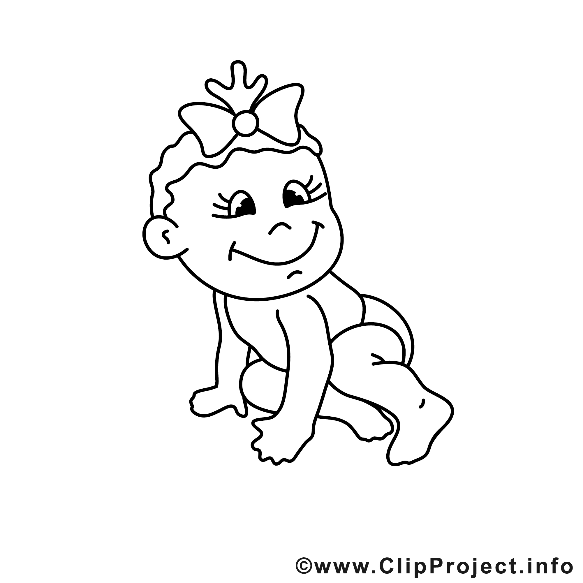 Hier sieht man ein fröhliches Baby, das auf allen viere krabbelt. Mit einem großen Lächeln – echt süß! Der kleine Liebling trägt ein schickes Haarband mit einer großen Schleife. Die runden Wangen und die strahlenden Augen machen das Bild einfach unwiderstehlich. Bei genauem Hinsehen fällt auf, dass die Pose ganz spielerisch wirkt, als würde das Baby die Welt erkunden. Es gibt wirklich viele Details, die man mit Farben zum Leben erwecken kann.