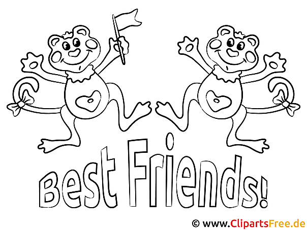 In diesem süßen Malbild sind zwei fröhliche kleine Tiere abgebildet, die Hand in Hand stehen. Sie haben große, lächelnde Gesichter und tragen lustige kleine Outfits. Über ihnen prangt der Spruch „Best Friends!“, was das Bild ganz besonders macht. Die beiden Freunde, die irgendwie an verspielte Mäuse oder Frösche erinnern, scheinen sich zu freuen und eine kleine Abenteuerreise zu beginnen. tja, Man sieht: Hier steckt eine Menge Freude und Zusammenhalt drin. naja, Ein perfektes Bild zum Ausmalen für Kinder, die Freundschaft lieben!