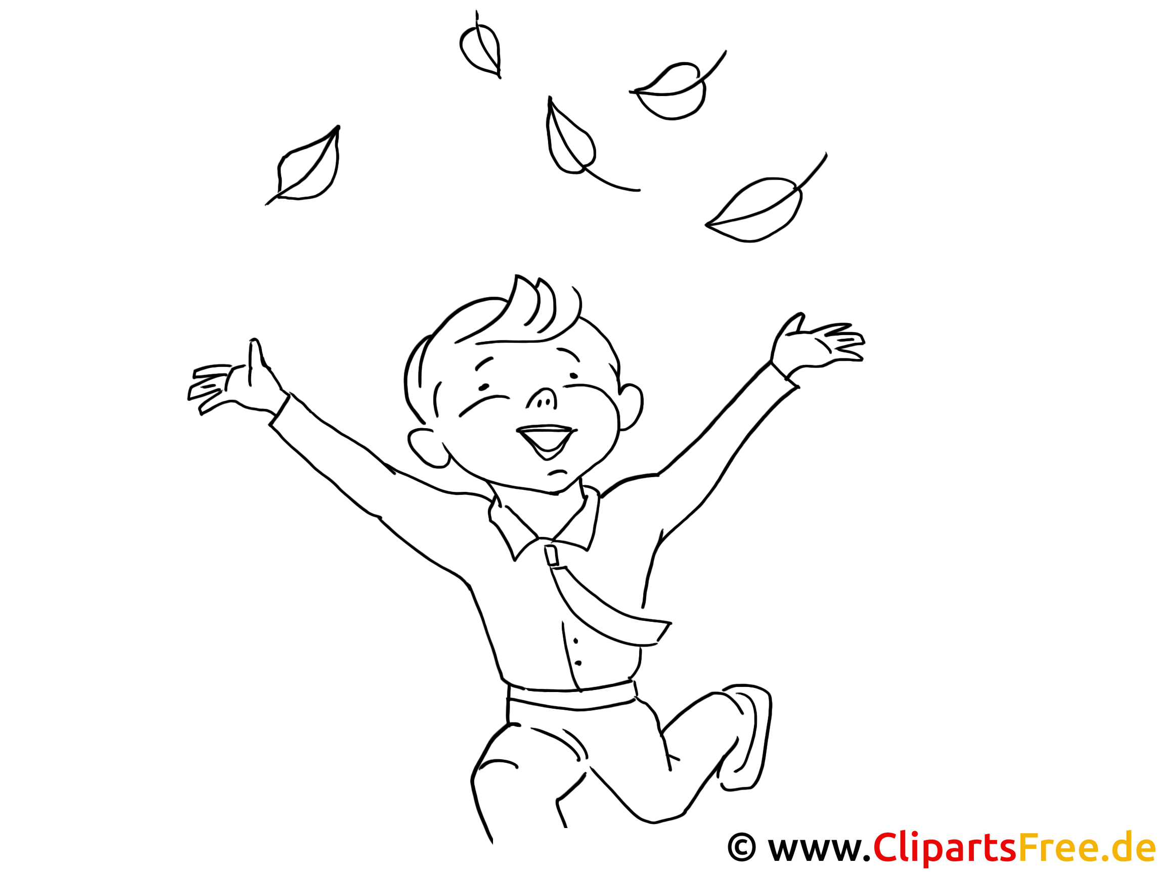 Schaut mal, was für ein fröhliches Bild! Hier sieht man einen kleinen Jungen, der vor Freude strahlt. Er hebt seine Arme in die Luft, als ob er die Freiheit geradezu umarmen möchte. Um ihn herum tanzen hübsche, grüne Blätter durch die Luft – vielleicht ist der Wind gerade richtig für ein kleines Abenteuer. Man kann sich gut vorstellen, wie er draußen im Park spielt, während die Sonne lacht. ähm, Diese Szene erweckt sofort das Gefühl von Lebendigkeit, Freude und Unbeschwertheit – perfekt für eine Ausmalvorlage!