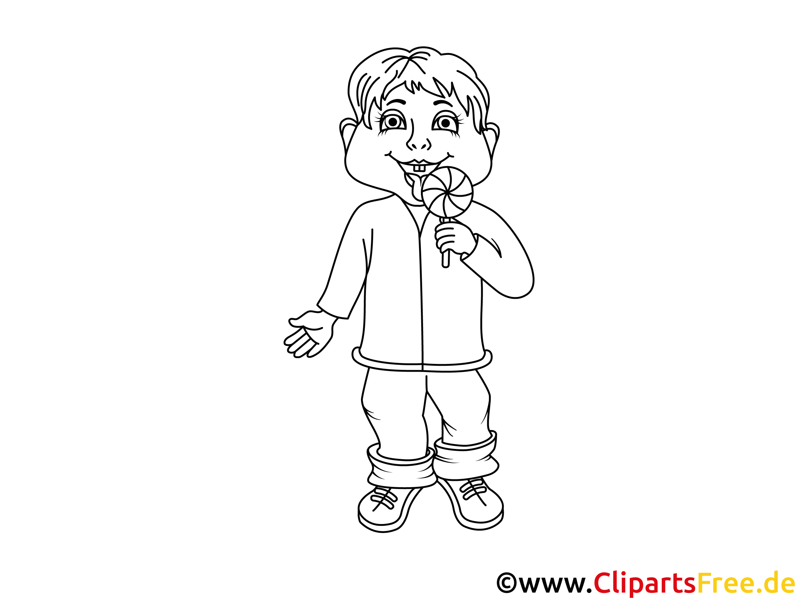 Kind mit Lutscher Bild, Clipart, Illustration schwarz-weiß zum Ausmalen