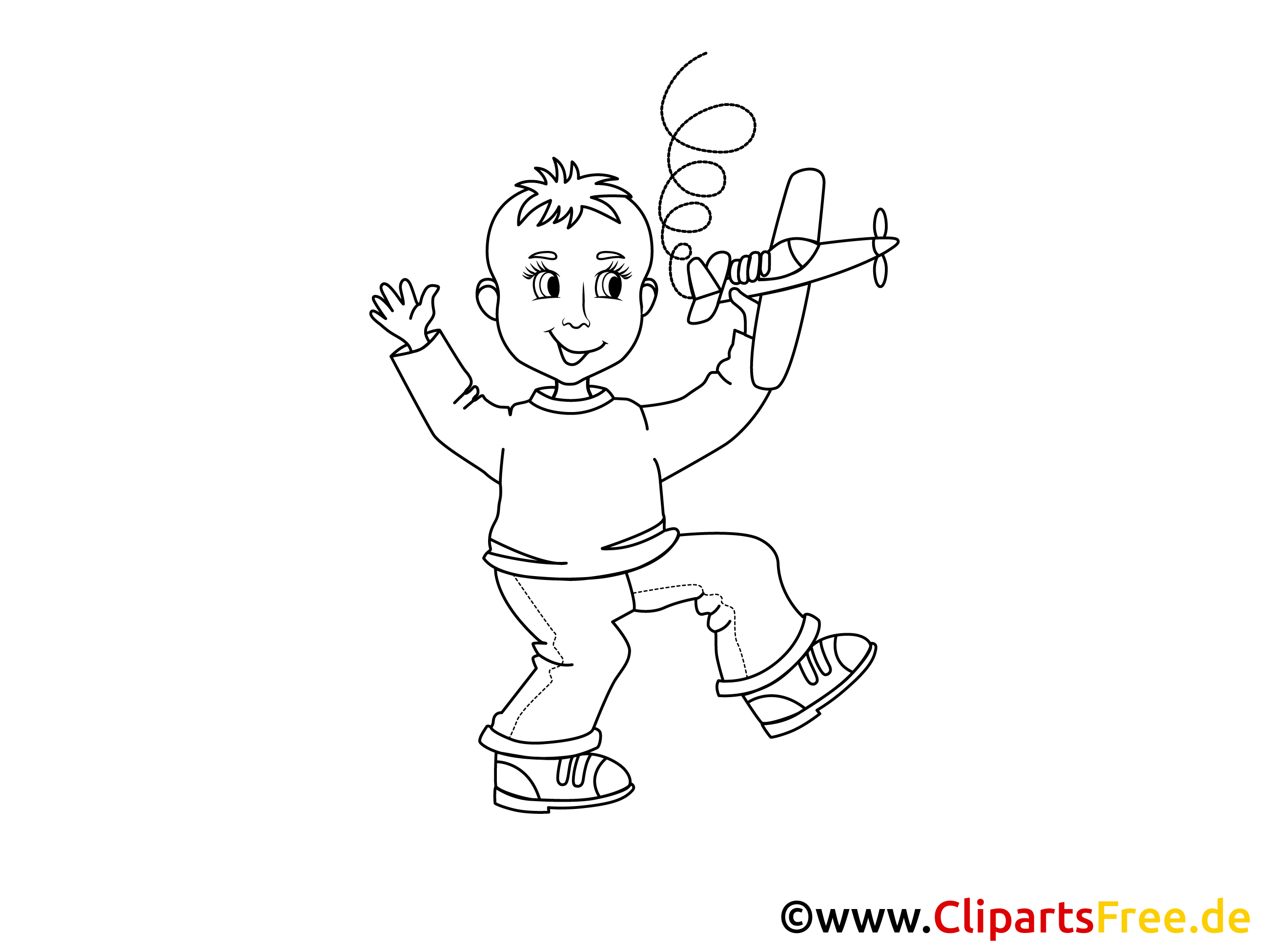 Kostenlose Malvorlage Kind spielt mit Flugzeug