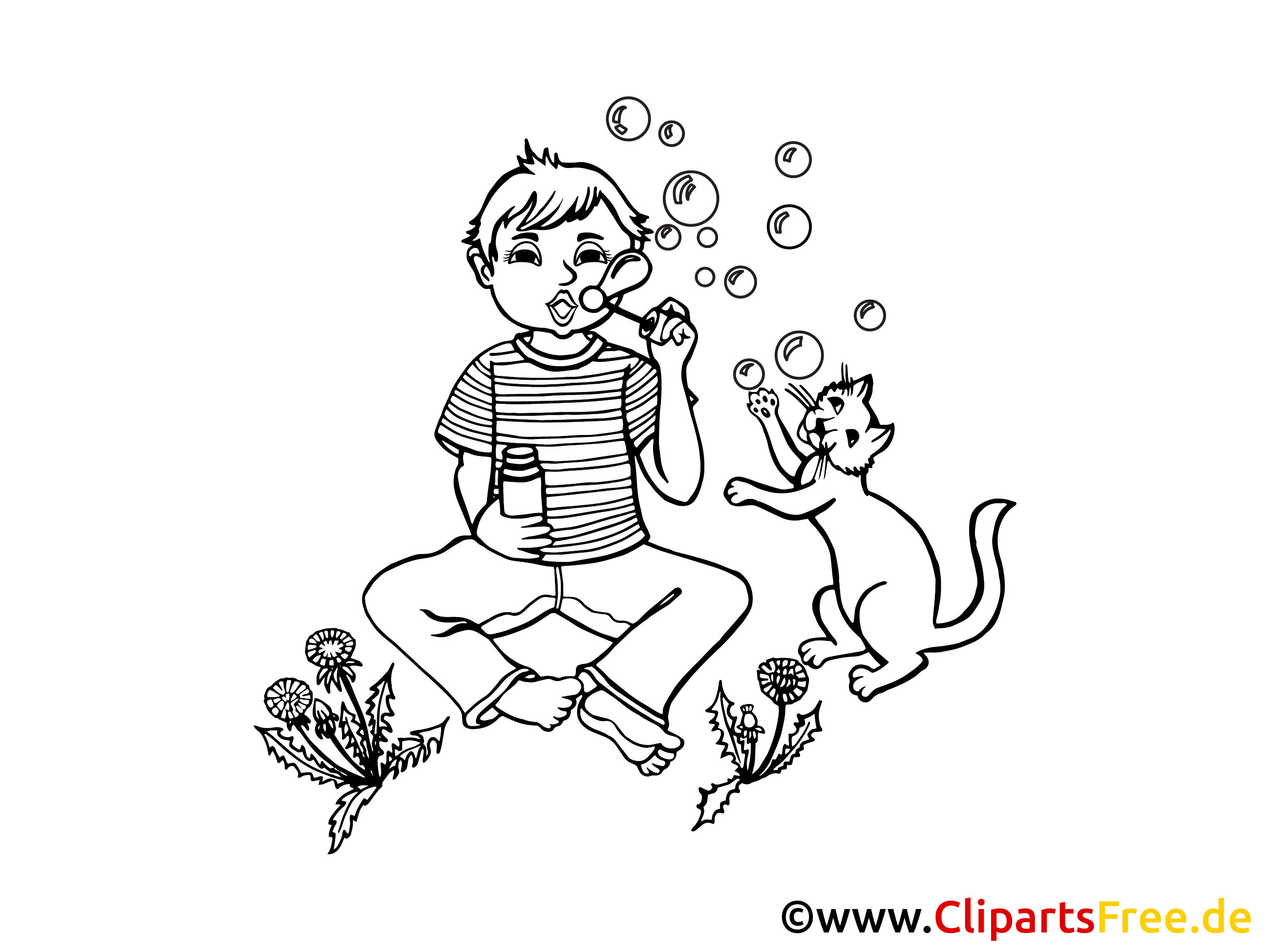 Original-Bild: Kostenlose Malvorlage Seifenblasen, Junge, Kind, Kater