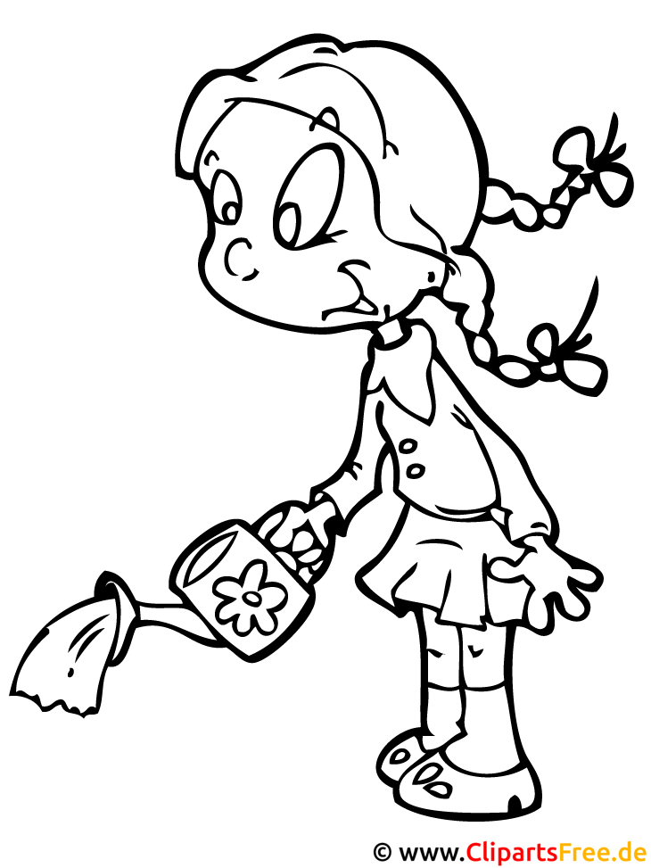 Mädchen mit Gießkanne im Kindergarten Malvorlage