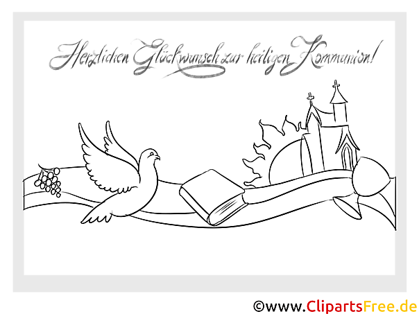 Das Ausmalbild, das man hier sieht, vermittelt ganz besondere Gefühle. Eine elegante Friedenstaube schwebt sanft durch die Szene – sie symbolisiert Hoffnung und Gelassenheit. Daneben sieht man ein offenes Buch, was den Bezug zur Bibel und zur Religion unterstreicht. Im Hintergrund erkennt man eine hübsche Kirche mit einem strahlenden Sonnenaufgang. Dieser sonnige Hintergrund verleiht dem Gesamtbild eine freundliche Atmosphäre, perfekt für einen besonderen Anlass wie die heilige Kommunion. hm, Eine liebevolle Glückwunschbotschaft rundet das Ganze ab, sodass man direkt beim Anblick des Motivs in fröhliche Stimmung gerät.