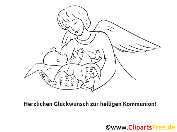 Das Bild zeigt eine sanfte und liebevolle Szene mit einem Engel, der ein kleines Baby in seinen Armen hält. Der Engel hat gütige Züge, und es scheint, als würde er das Baby zärtlich betrachten. Die Details sind weich, und die umgebenden Elemente vermitteln eine friedliche Atmosphäre. Es ist wirklich herzzerreißend und perfekt für besondere Anlässe, besonders für die heilige Kommunion. Der Text "Herzlichen Glückwunsch zur heiligen Kommunion!" rundet das Ganze ab und macht das Bild noch inniger. Zum Ausmalen perfekt!