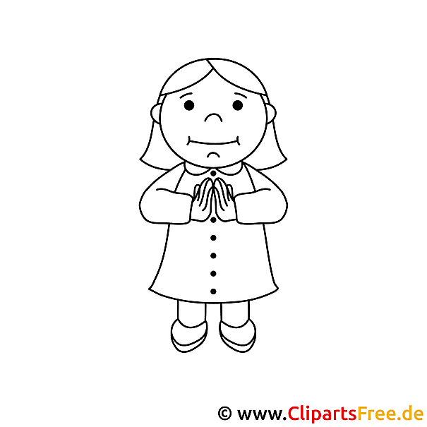 Das Ausmalbild zeigt ein fröhliches Mädchen, das mit gefalteten Händen auf eine sehr süße Weise dasteht. Man sieht ihr die Freude förmlich an! Sie trägt ein schlichtes Kleid mit Knöpfen, ganz unkompliziert, und hat eine entspannte Miene. Ihre Haare sind in sanften Wellen, was dem Bild eine freundliche Note verleiht. Ehrlich gesagt, das Motiv hat eine charmante Ausstrahlung, die jedes Kind zum Lächeln bringt, wenn es mit Farben spielt.
