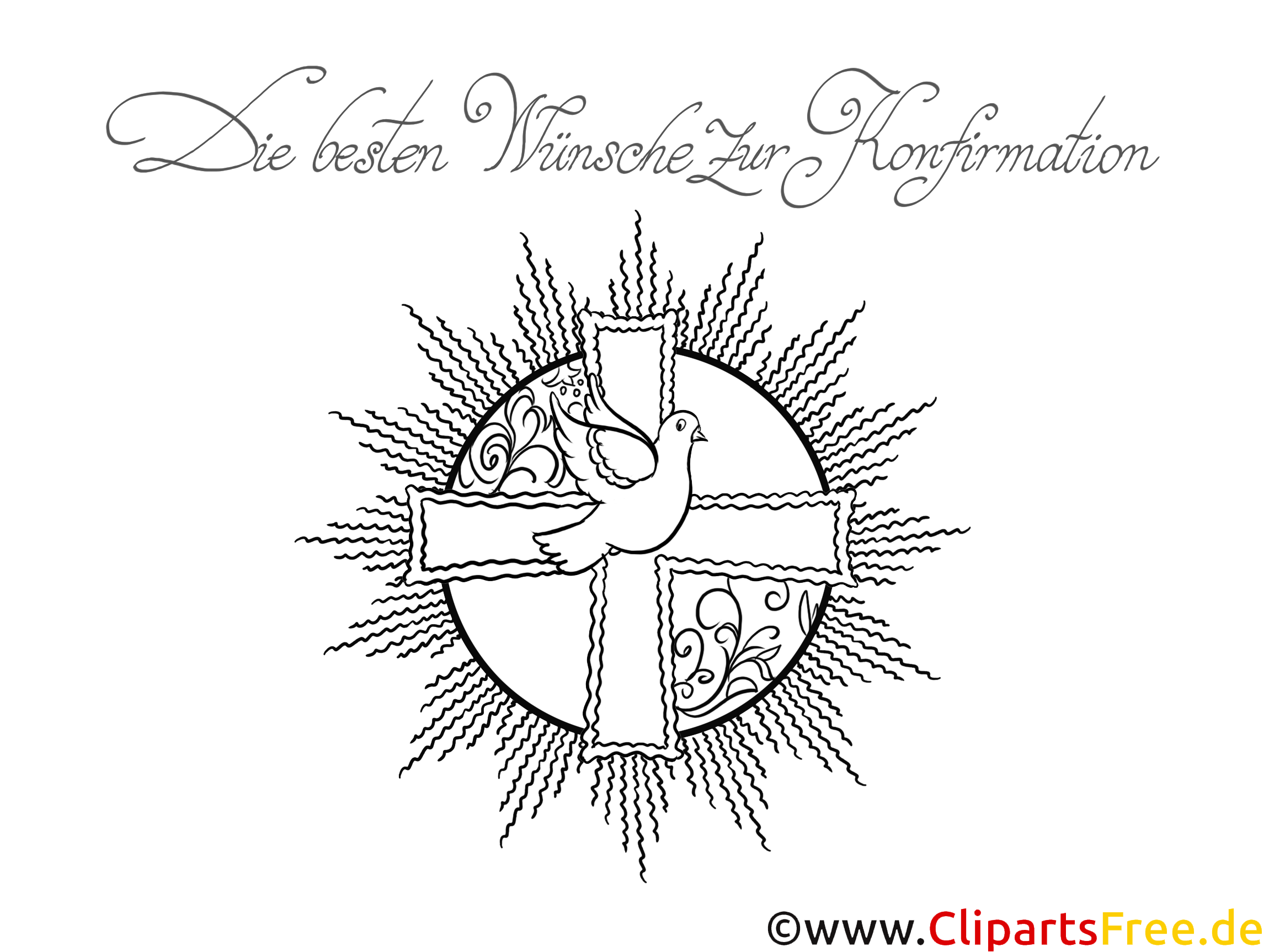 Original-Bild: Konfirmation Ausmalbild mit Taube, Kreuz und Sonne
