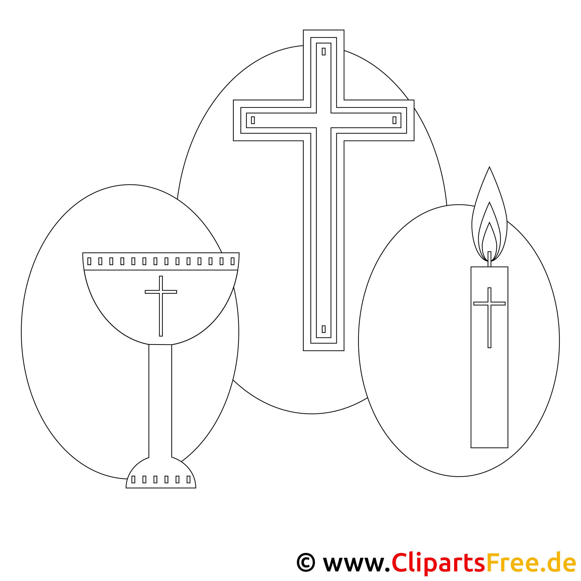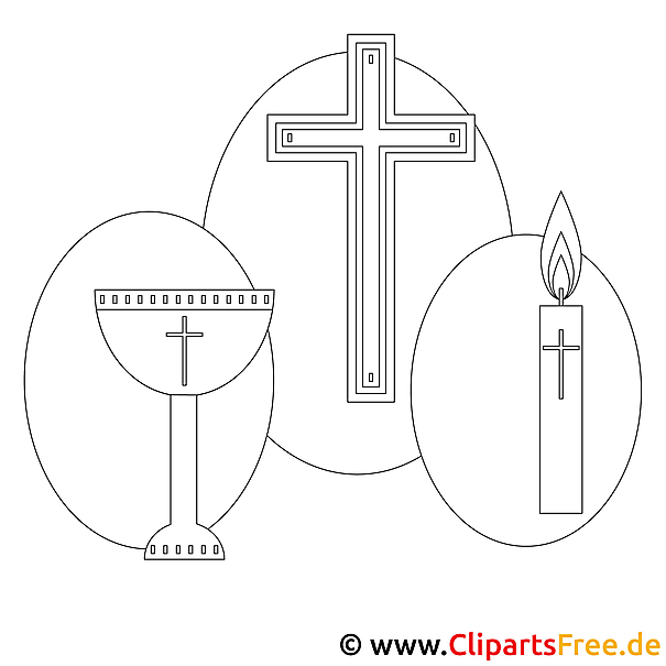 In der Mitte des Bildes, na ja, das gibt's ja nicht jeden Tag! Wir haben ein Kreuz, ein Kelch und eine Kerze – alles steht hier für besondere Momente, wie zum Beispiel die Erstkommunion oder einen Gottesdienst. Das Bild ist so gestaltet, dass man es leicht ausmalen kann. Das Kreuz hat klare Linien. Der Kelch, ulkig, ja, ein richtig schöner rundlicher Kelch, der eigenständig wirkt. Und die Kerze, hey, die könnte fast schon flackern, wenn man sie mit Farbe füllt. ähm, Die Formen sind einfach, aber das gibt dir natürlich die Freiheit, ganz nach deiner Fantasie zu gestalten!