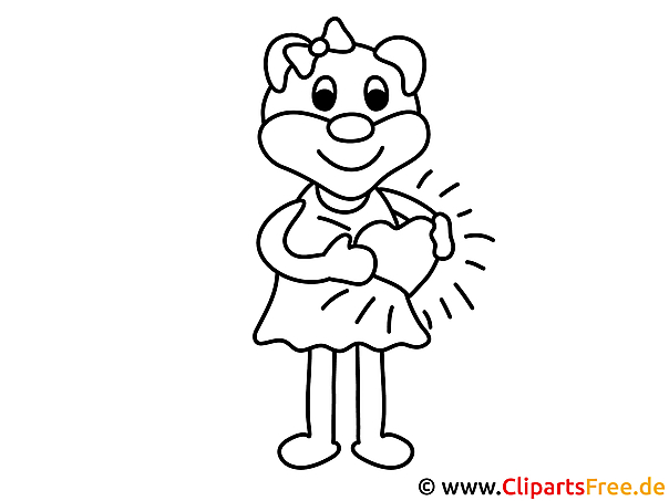 Schau dir dieses putzige Motiv an! Hier sehen wir einen fröhlichen Bären, der ein großes, herzförmiges Bild in seinen Pfoten hält. Die Bärin trägt ein hübsches Kleid und hat eine süße Schleife im Haar. Ihre Augen strahlen vor Freude und sie scheint ganz stolz, dieses Herz zu präsentieren. Es wirkt fast so, als wolle sie mit jedem zeigen, wie viel Liebe sie in sich hat. Zwei kleine Herzchen blitzen rund um das Herz – einfach zauberhaft!