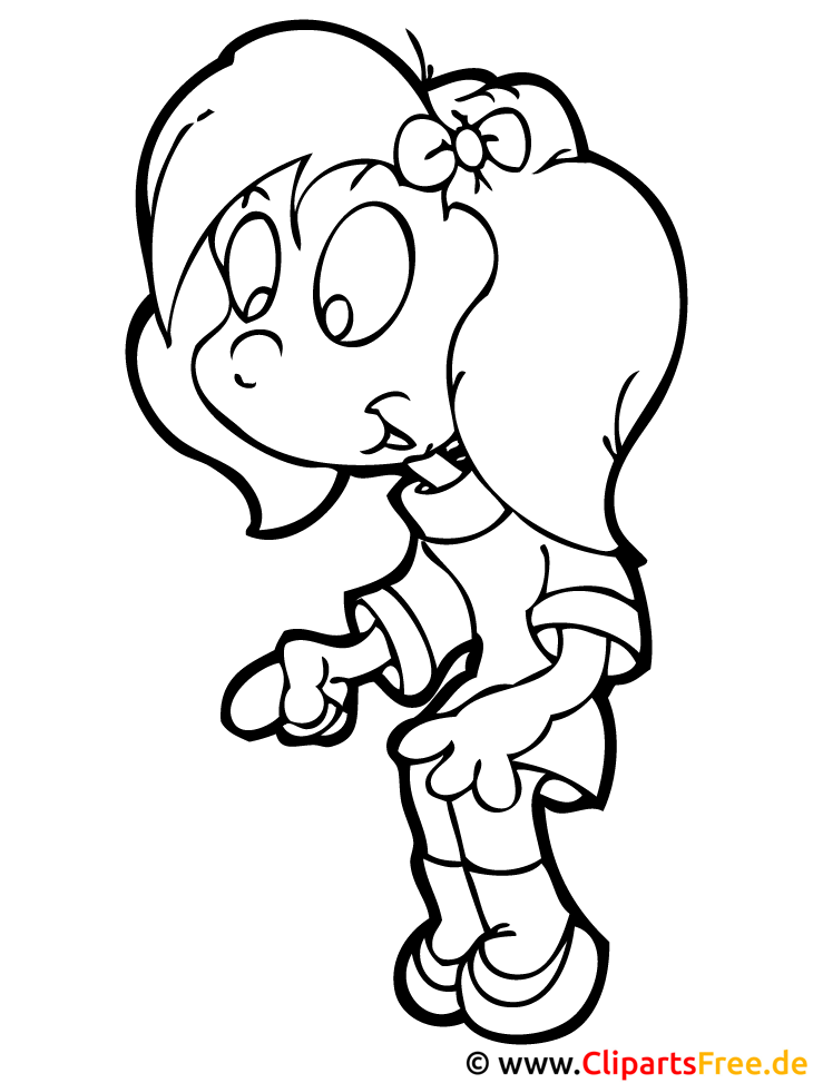 Dieses süße Ausmalbild zeigt ein kleines, fröhliches Mädchen mit großen Augen und einer lustigen Frisur. Es sieht so aus, als würde es gerade etwas erkunden – vielleicht ein spannendes Abenteuer in der Nachbarschaft oder im eigenen Zimmer. Die Kleider sind einfach, aber charmant. Ihre Pose wirkt lebendig und einladend, man möchte fast meinen, sie hat eine spannende Geschichte zu erzählen! Übrigens, die kleinen Details, wie die Blume im Haar, geben dem Bild einen besonderen Touch.
