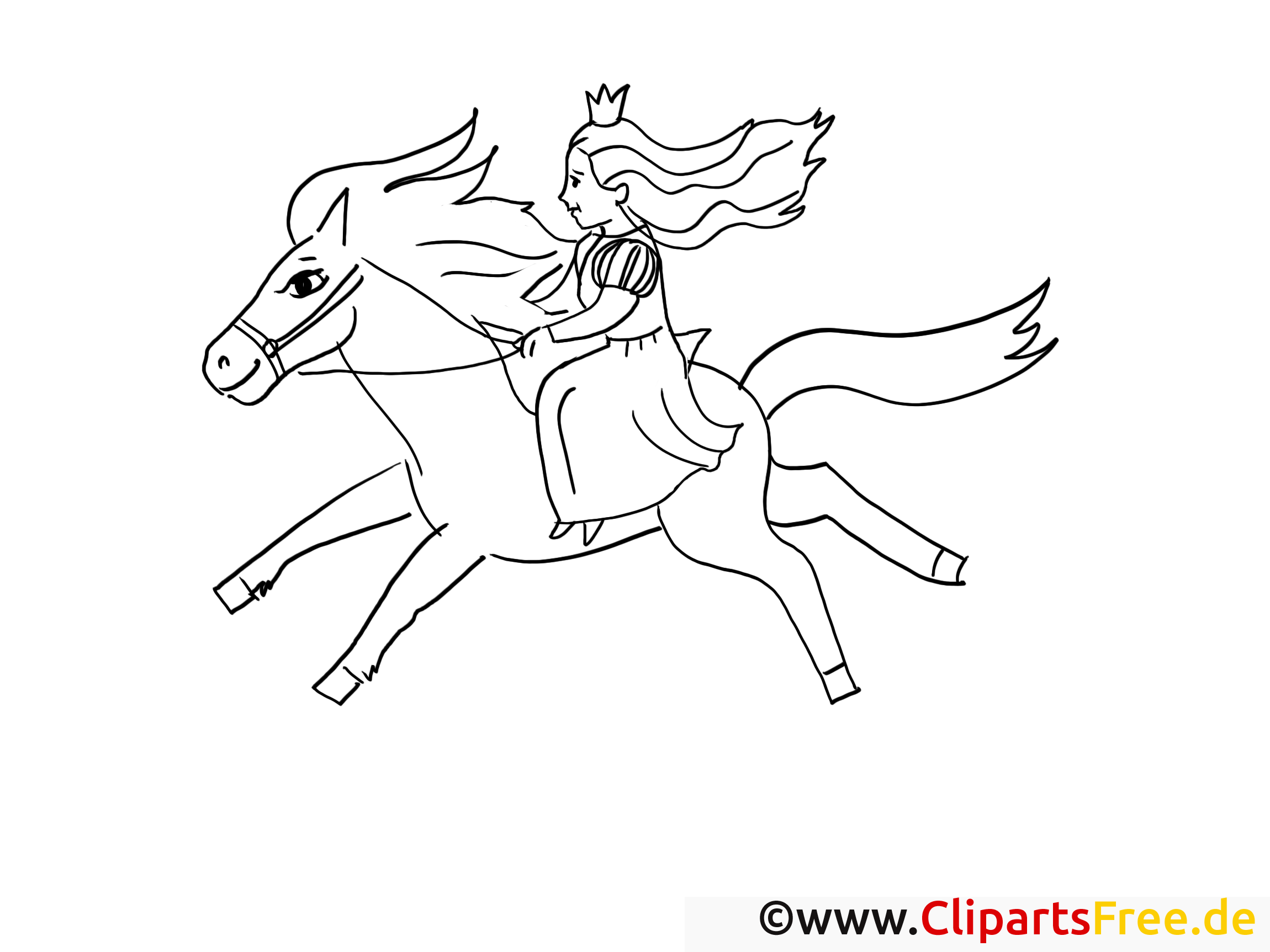 Ausmalbild Prinzessin reitet auf dem Pferd kostenlos herunterladen