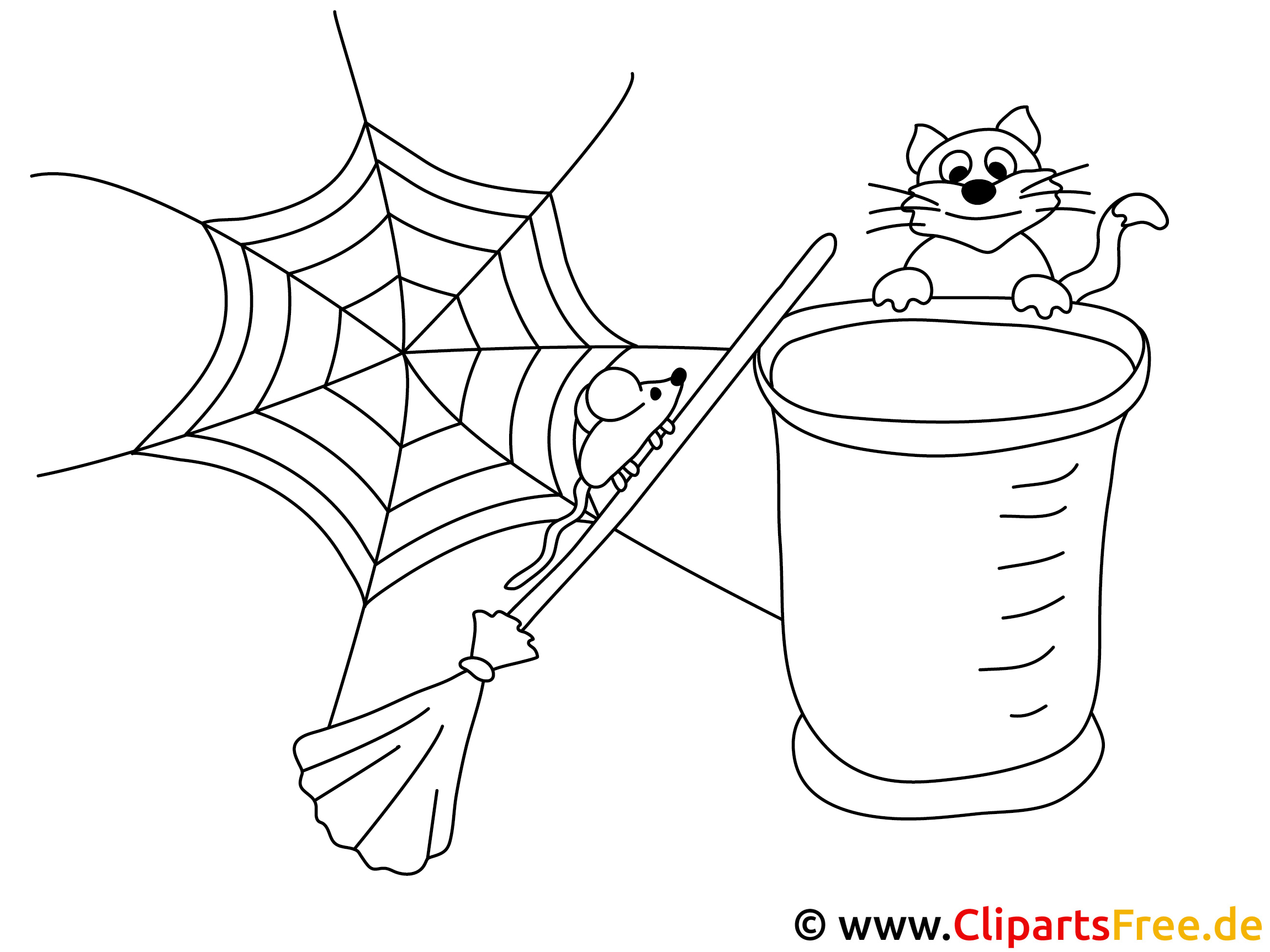 Hier haben wir ein ganz lustiges Bild zum Ausmalen! Ein freches kleines Mistvieh, eine Maus, hat sich mit einem Besen auf die große, weiße Wand gekämpft. Und über ihr, ganz neugierig, sitzt eine strahlende Katze. Die Atmosphäre ist gleichzeitig spannend und irgendwie gemütlich, durch das alte Spinnennetz, das im Bild zu sehen ist. Es gibt fast etwas Mystisches, wenn man die Szene betrachtet! Die kleinen Details laden geradezu dazu ein, kreativ zu werden und mit bunten Farben Abenteuer auf das Papier zu zaubern.