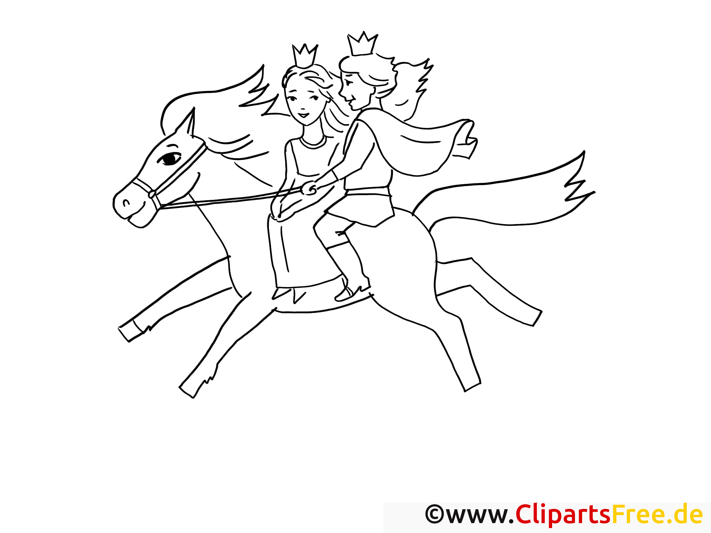 Original-Bild: Prinz und Prinzessin reiten auf Pferd Ausmalbilder Märchen