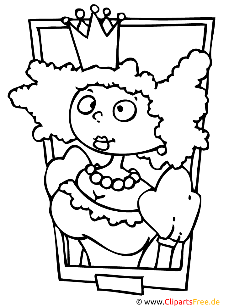 Hier sehen wir ein ganz besonderes Bild. Es zeigt eine lustige und fröhliche Figur mit einer großen, lockigen Frisur. Sie trägt eine Krone und hat außerdem ein wunderschönes Outfit an, das einen tollen Kontrast zu ihrer lebhaften Ausstrahlung bildet. Ihre großen Augen scheinen den Betrachter direkt anzuschauen. also, Man könnte fast meinen, sie ist bereit, in ein neues Abenteuer aufzubrechen! Oh, und diese Kette um ihren Hals – das bringt das ganze Bild wirklich zum Strahlen. Es steckt viel Charme in dieser Malvorlage!