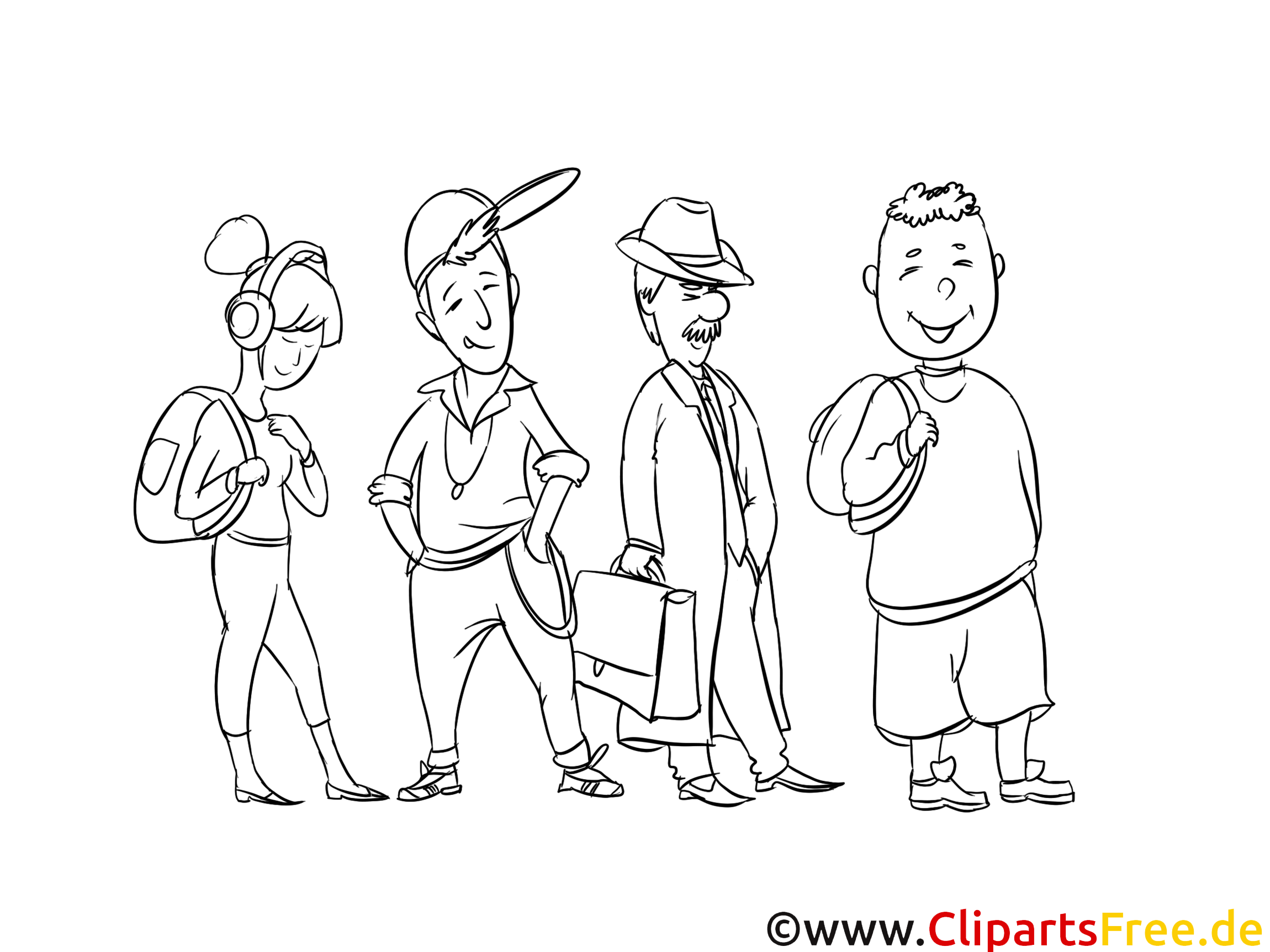 Kostenloses Ausmalbild mit fröhlichen Charakteren als PDF downloaden