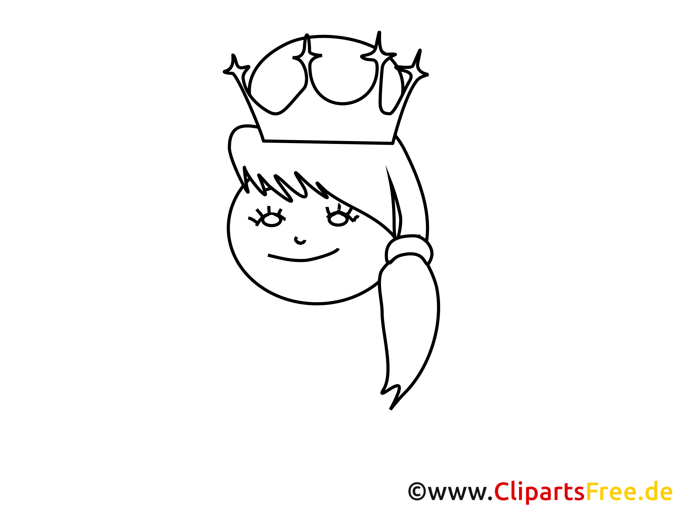 Original-Bild: Kostenloses Ausmalbild Mädchen mit Krone als PDF Malvorlage