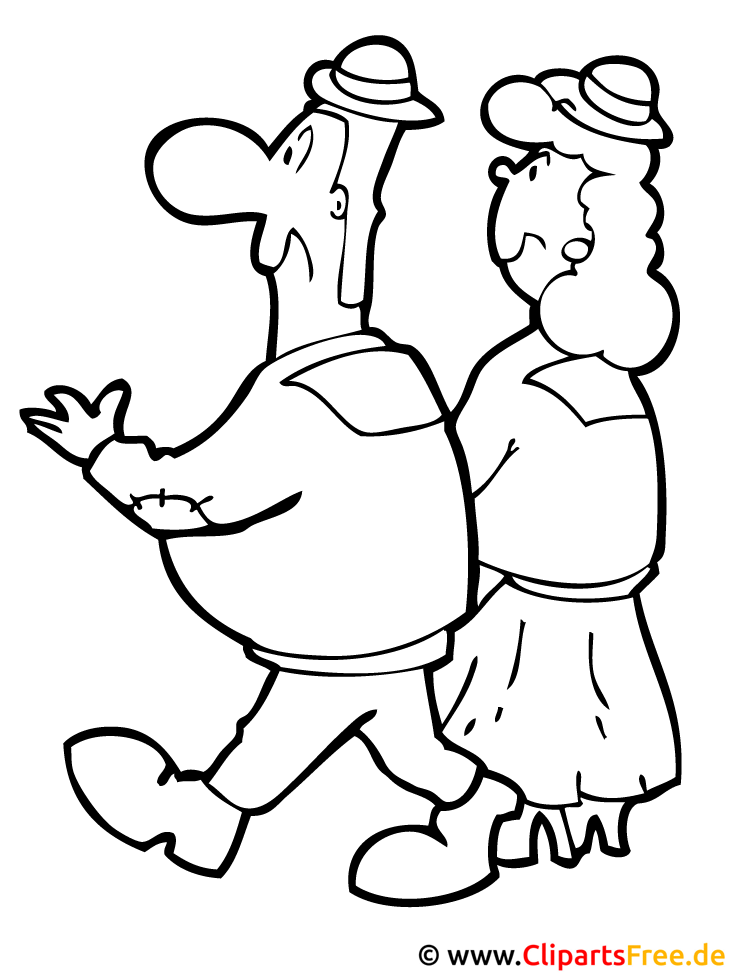 In diesem unterhaltsamen Ausmalbild sehen wir ein fröhliches Paar, das eng beieinander steht. Der Mann, mit einem etwas Übergewicht, trägt eine lustige Mütze und sieht ziemlich optimistisch aus. Neben ihm steht eine Frau mit romantischen Locken und einem schlichten, eleganten Kleid. Die kleinen Details, wie ihre Frisuren und Kleidung, geben dem Bild eine ganz besondere Note. Man könnte meinen, sie erzählen sich ein geheimes, lustiges Geheimnis. Oh, und ihr Lächeln! Das ist einfach ansteckend!