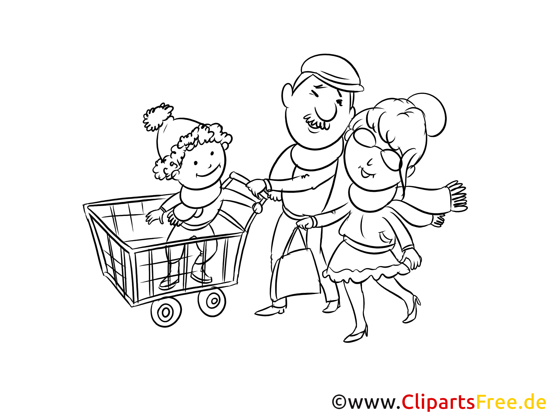 Kostenloses Ausmalbild Familie beim Einkaufen als PDF Malvorlage