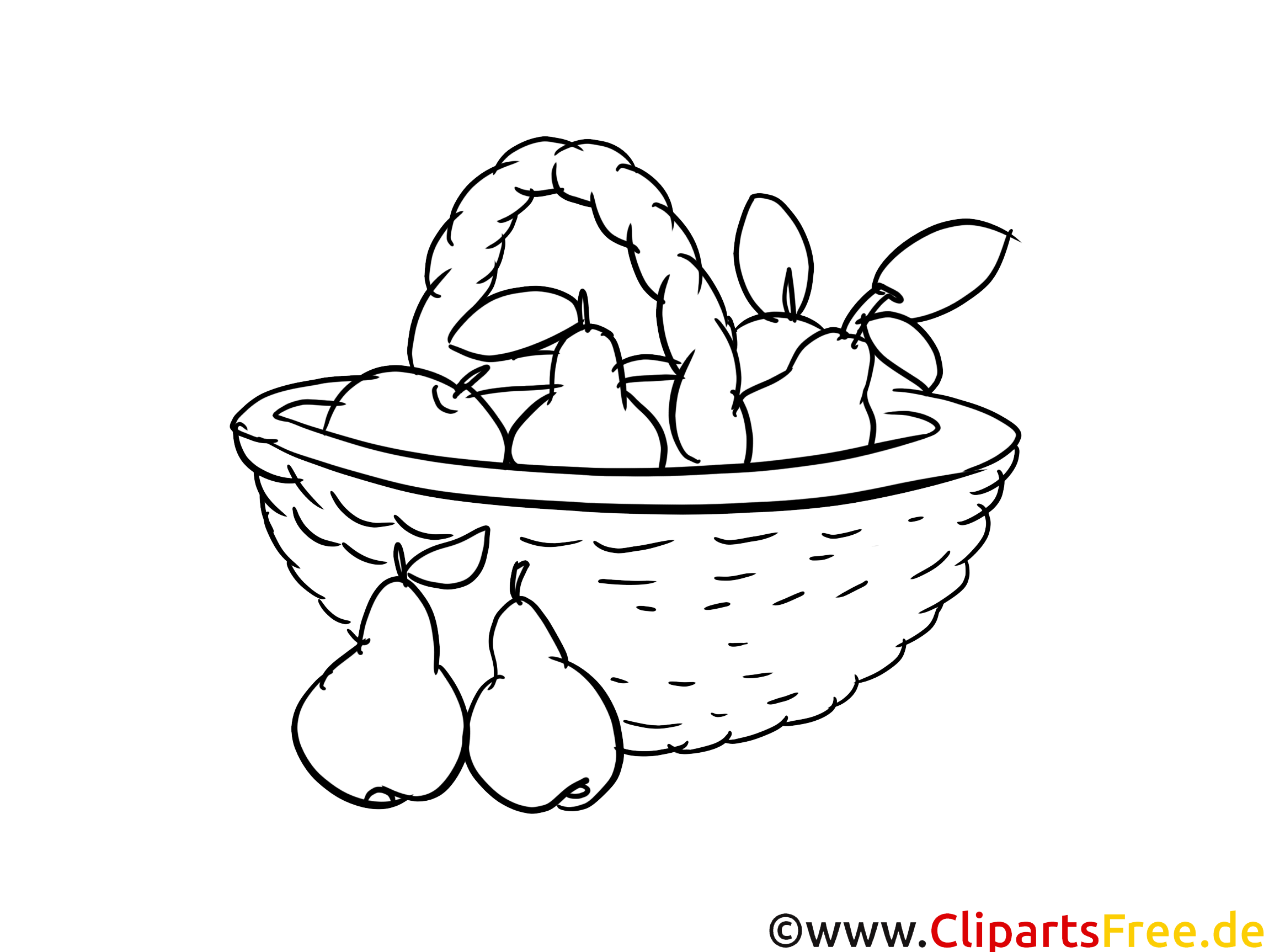 Original-Bild: Kostenloses Ausmalbild Korb mit Birnen als PDF Malvorlage