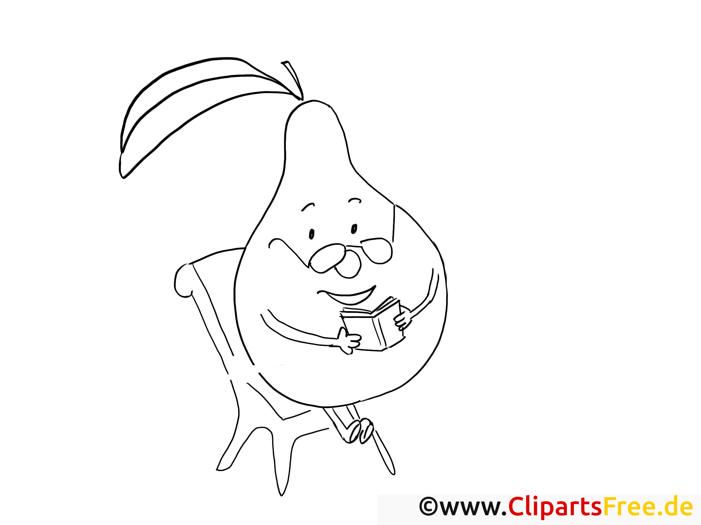 Kostenloses Ausmalbild: Niedliche Birne mit Brille als Malvorlage PDF