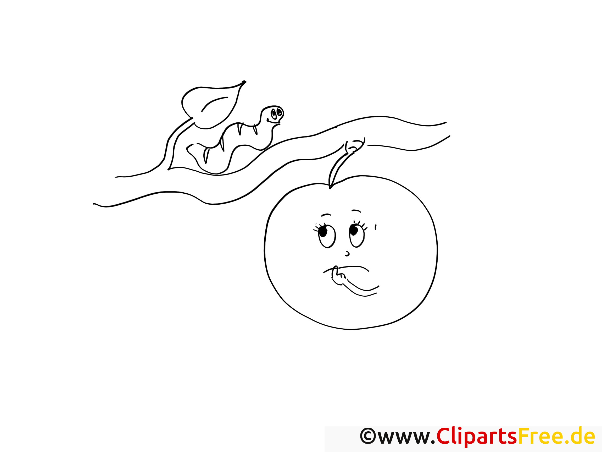 Kostenloses Ausmalbild Apfel mit Wurm - Malvorlage im PDF Format