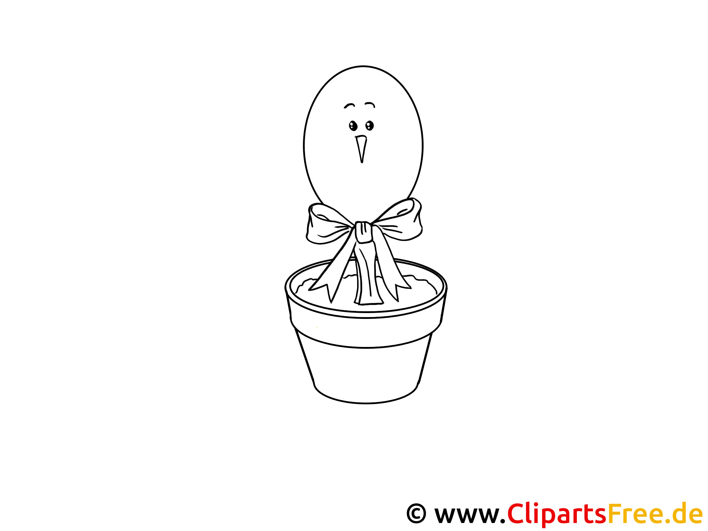 Kostenloses Ausmalbild Ei im Blumentopf als PDF Malvorlage downloaden