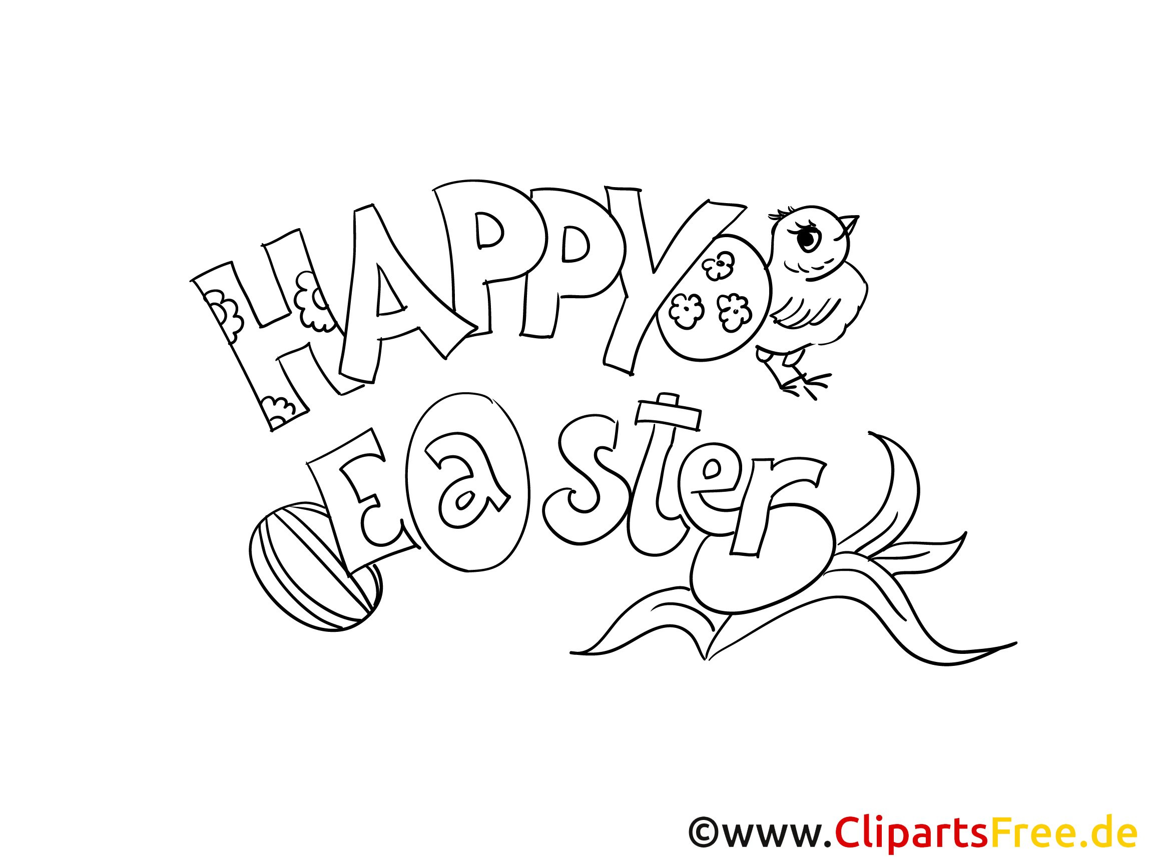 Kostenloses Ausmalbild Happy Easter als PDF-Malvorlage