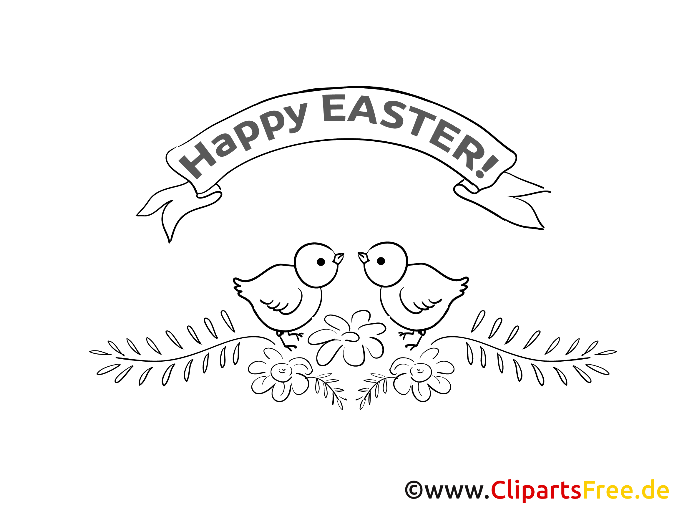 Original-Bild: Kostenloses Ausmalbild mit Vögeln für Ostern im PDF-Format