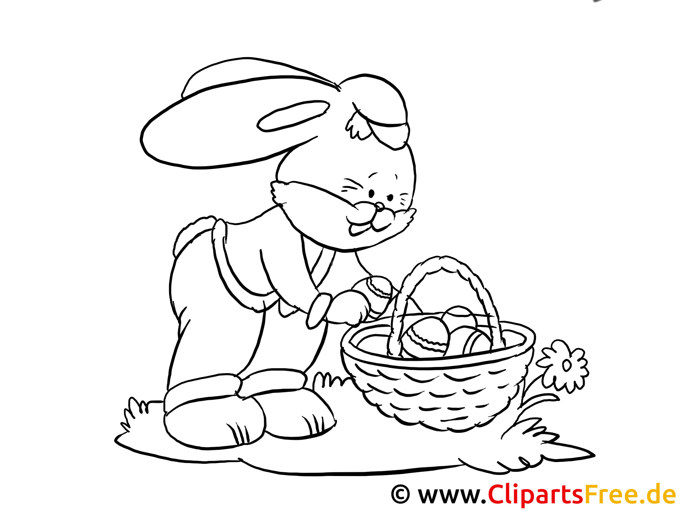 Kostenloses Ausmalbild Hase mit Osternest als PDF Malvorlage