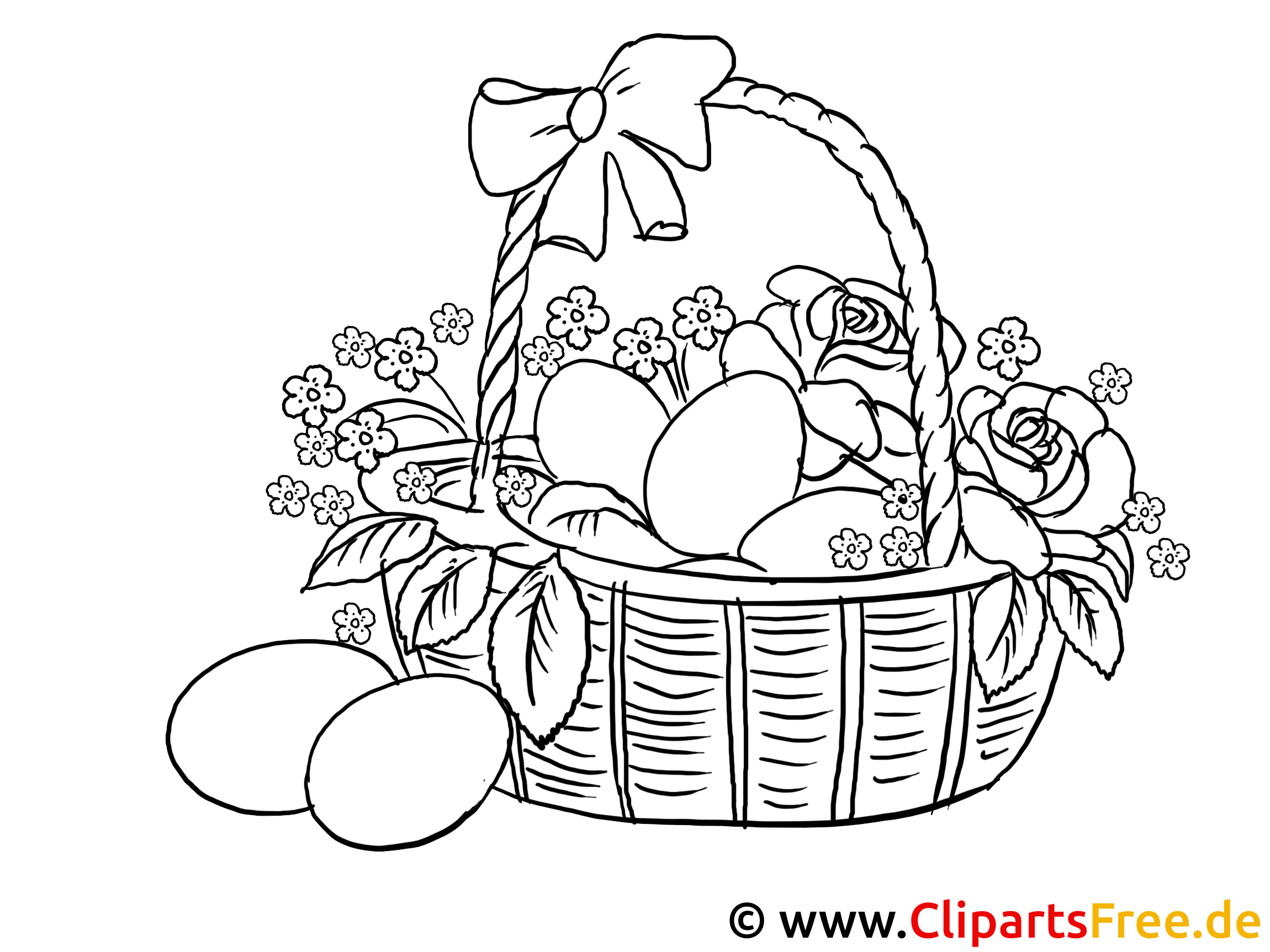 Original-Bild: Kostenloses Ausmalbild mit Korb und bunten Eiern als PDF