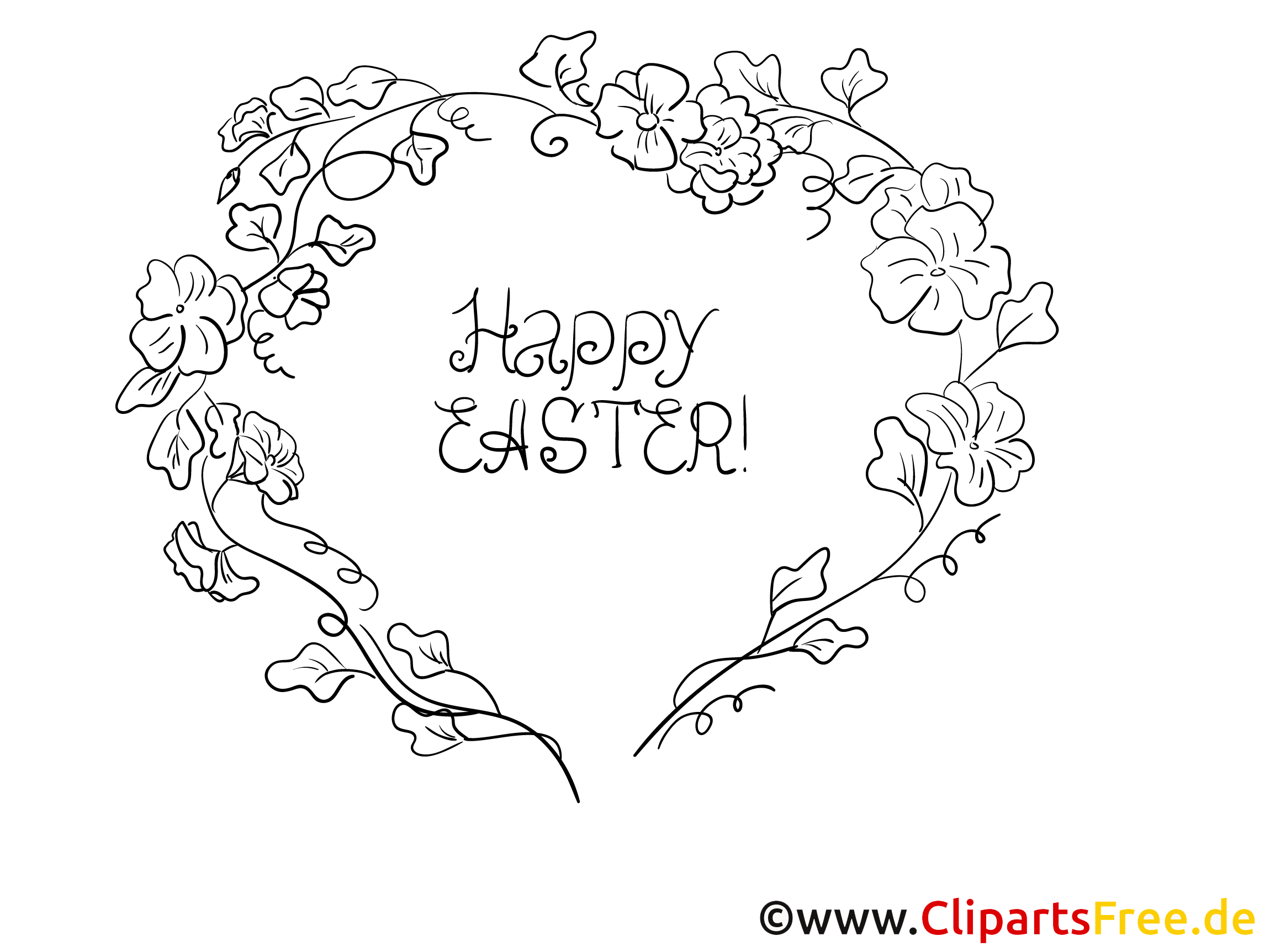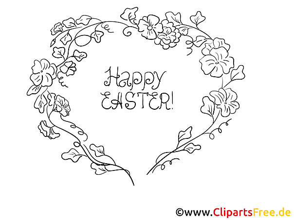 Das Motiv zeigt ein schönes Herz, das umrahmt ist von zauberhaften, blühenden Pflanzen. Diese Blumenvignette strahlt eine freundliche und fröhliche Atmosphäre aus, die perfekt ist, um Freude zu verbreiten – besonders zu Ostern! In der Mitte des Herzens steht der fröhliche Schriftzug „Happy EASTER!“. Wer könnte da nicht lächeln? Übrigens, die Details der Blumen laden förmlich ein, sie kunterbunt auszumalen und kreativ zu werden.