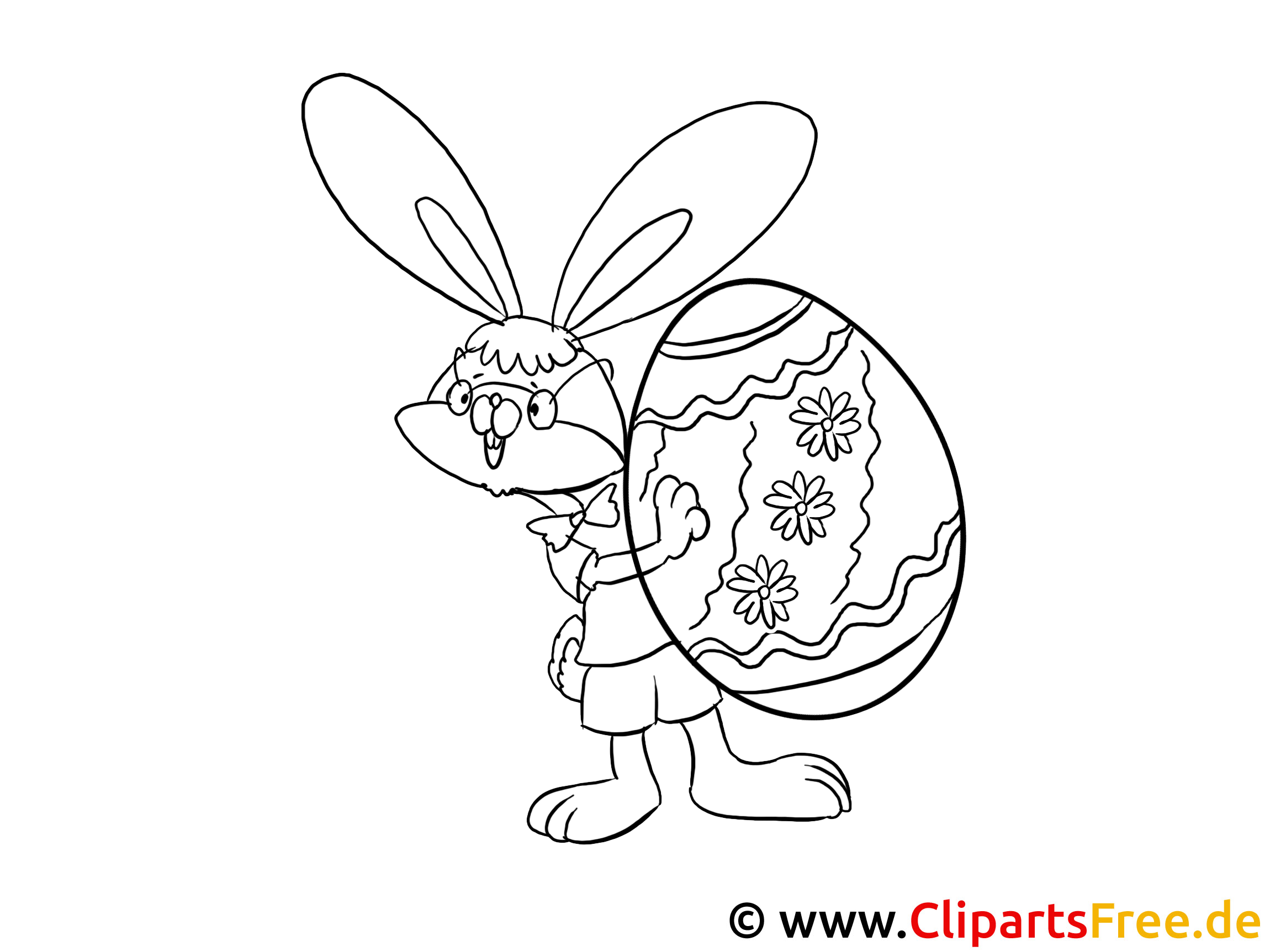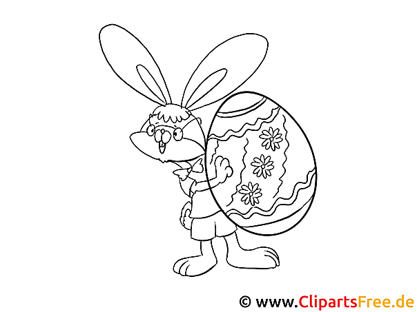 Original-Bild: Kostenloses Ausmalbild Hase mit Osterei – Malvorlage im PDF