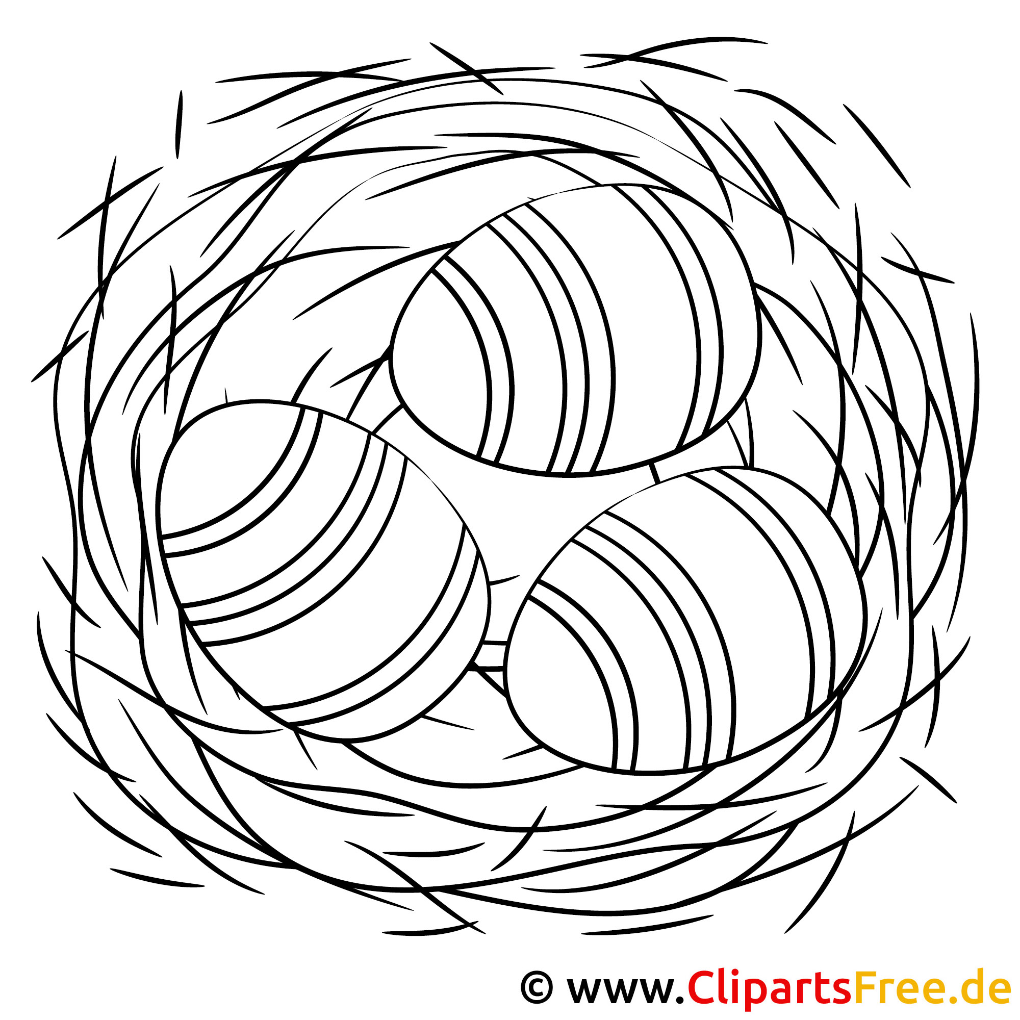 Kostenloses Ausmalbild mit bunten Eiern im Nest als PDF herunterladen