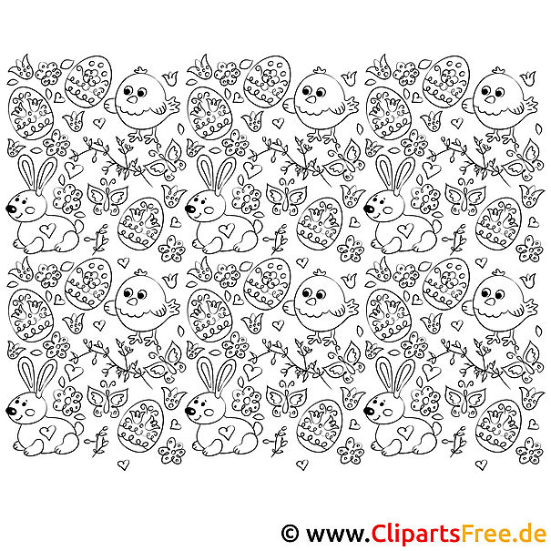 Original-Bild: Kostenloses Ausmalbild mit Hasen und Ostereiern im PDF-Format