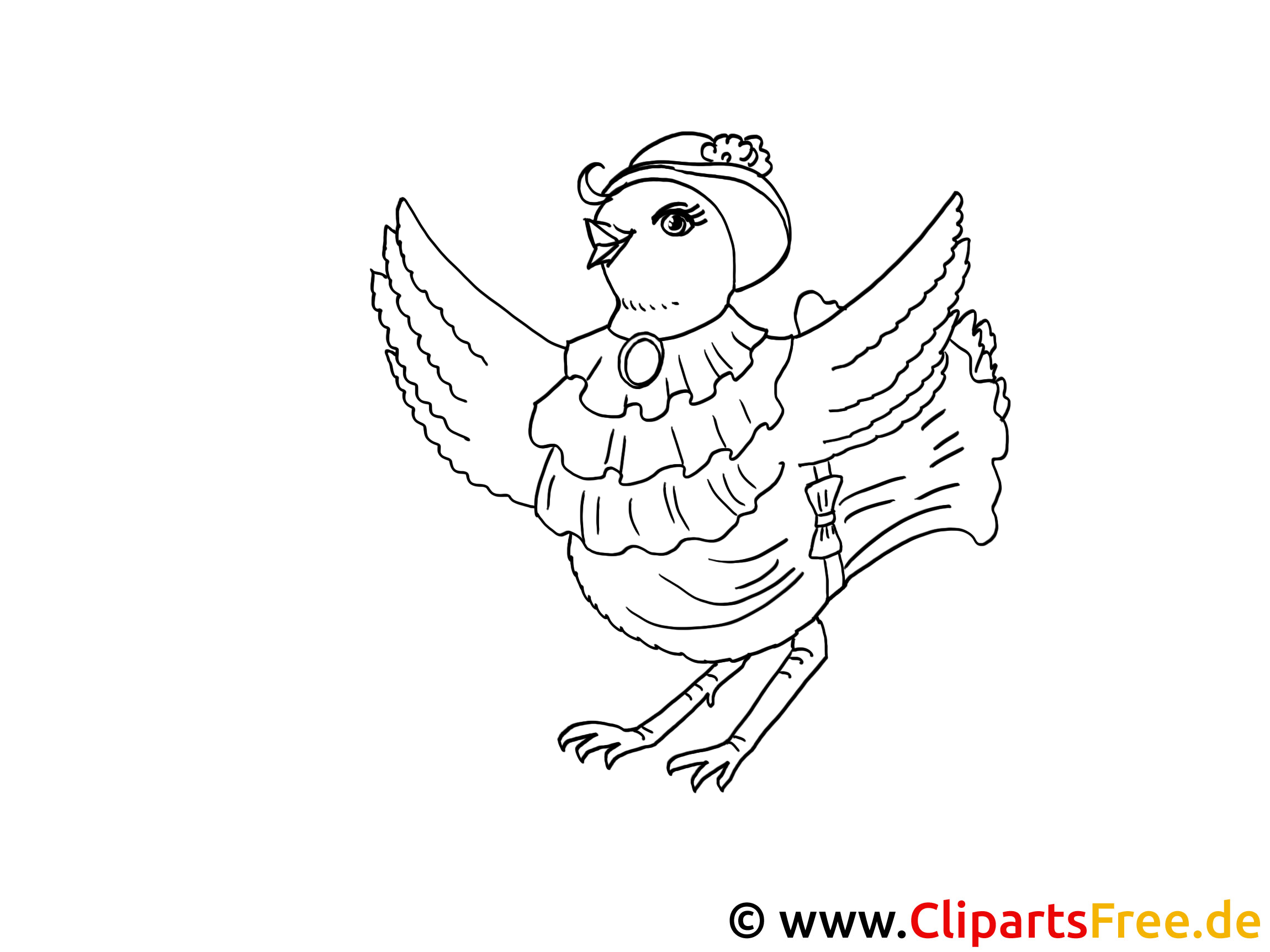 Kostenloses Ausmalbild Vogel im Hut – Malvorlage als PDF gratis