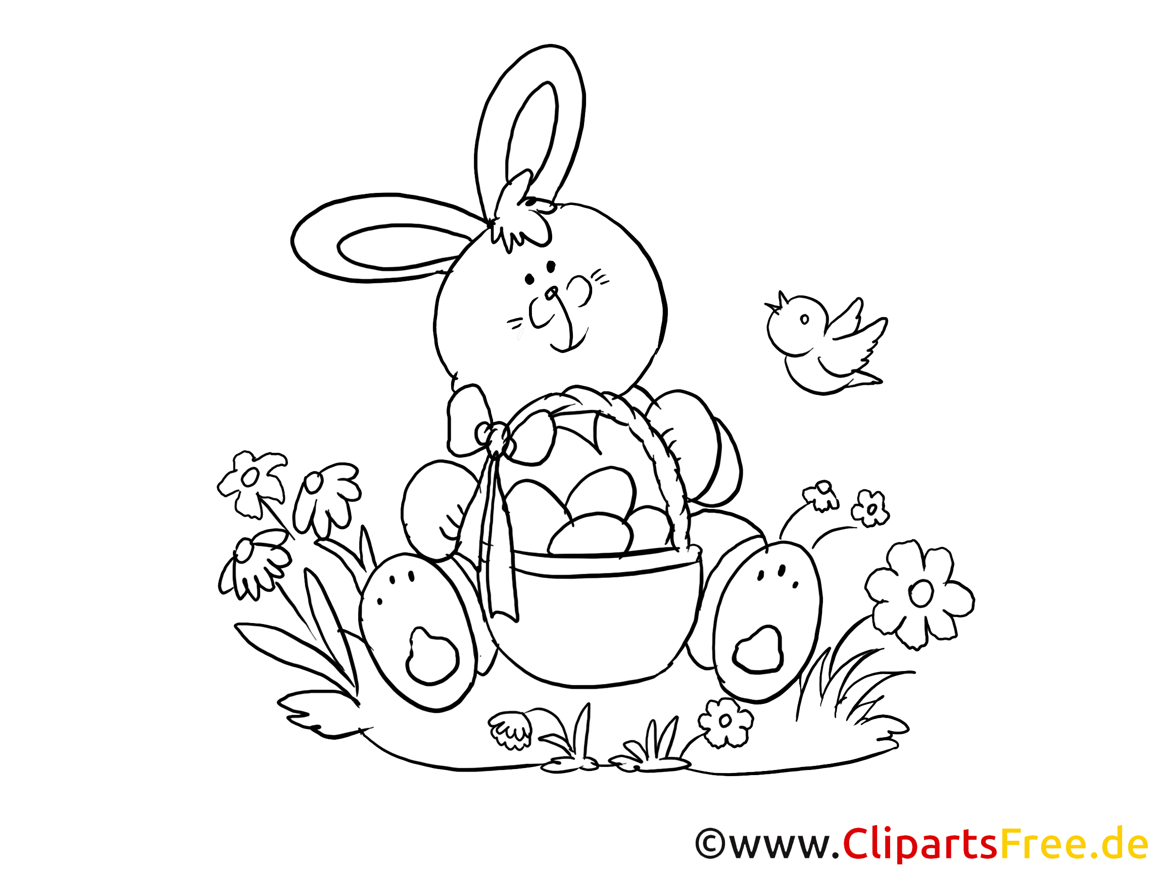 Kostenloses Ausmalbild Hase mit bunten Eiern als PDF Malvorlage