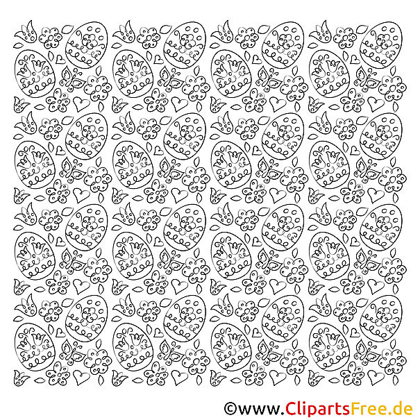 Original-Bild: Kostenloses Ausmalbild mit Ostereiern und Blumen im PDF-Format