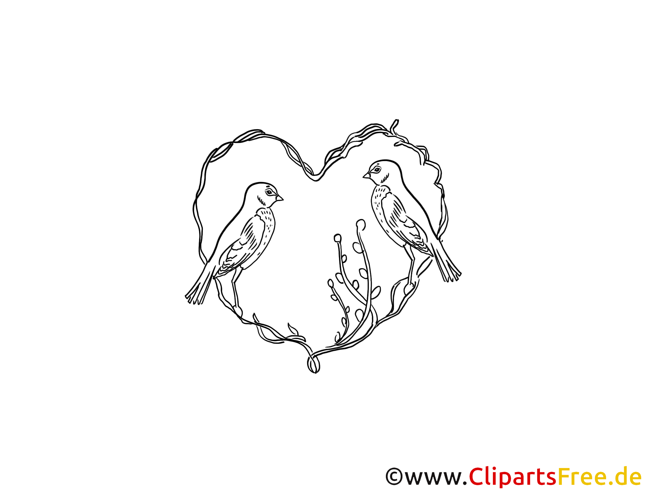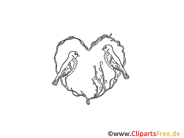 Original-Bild: Kostenloses Ausmalbild von Vögeln im Herzen als PDF Malvorlage