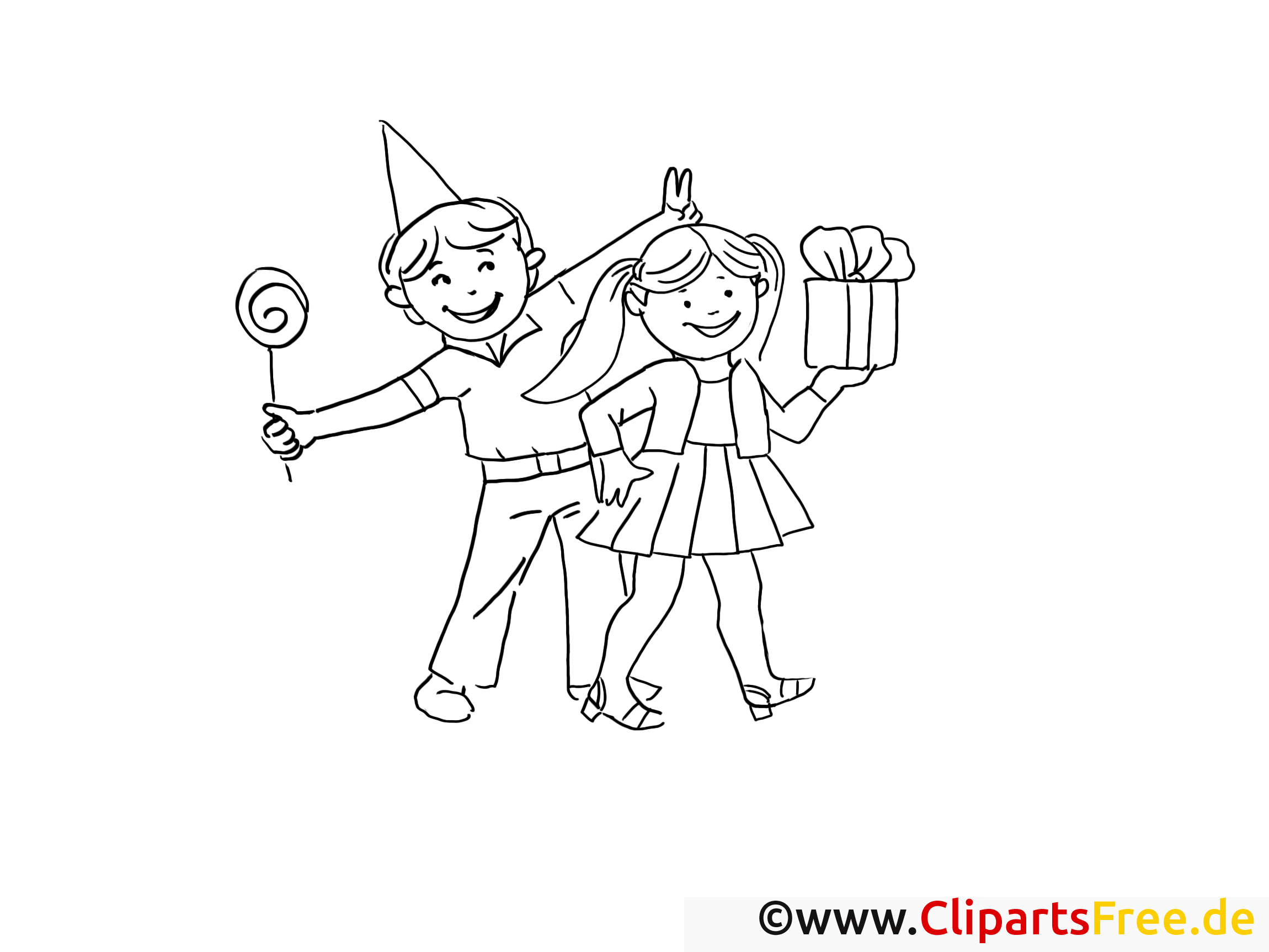 In diesem schönen Malbild siehst du zwei fröhliche Kinder. Oh, schau mal! Das Mädchen trägt ein süßes Kleid, während der Junge einen lustigen Partyhut aufhat. Er hält einen bunten Lutscher in der Hand, und sie lächeln vergnügt! Es scheint, als ob sie auf einer Geburtstagsparty sind – vielleicht ist sogar ein Geschenk dabei? Die Szene strahlt Freude und Freundschaft aus, das wird die Herzen der Kinder sicher höher schlagen lassen.