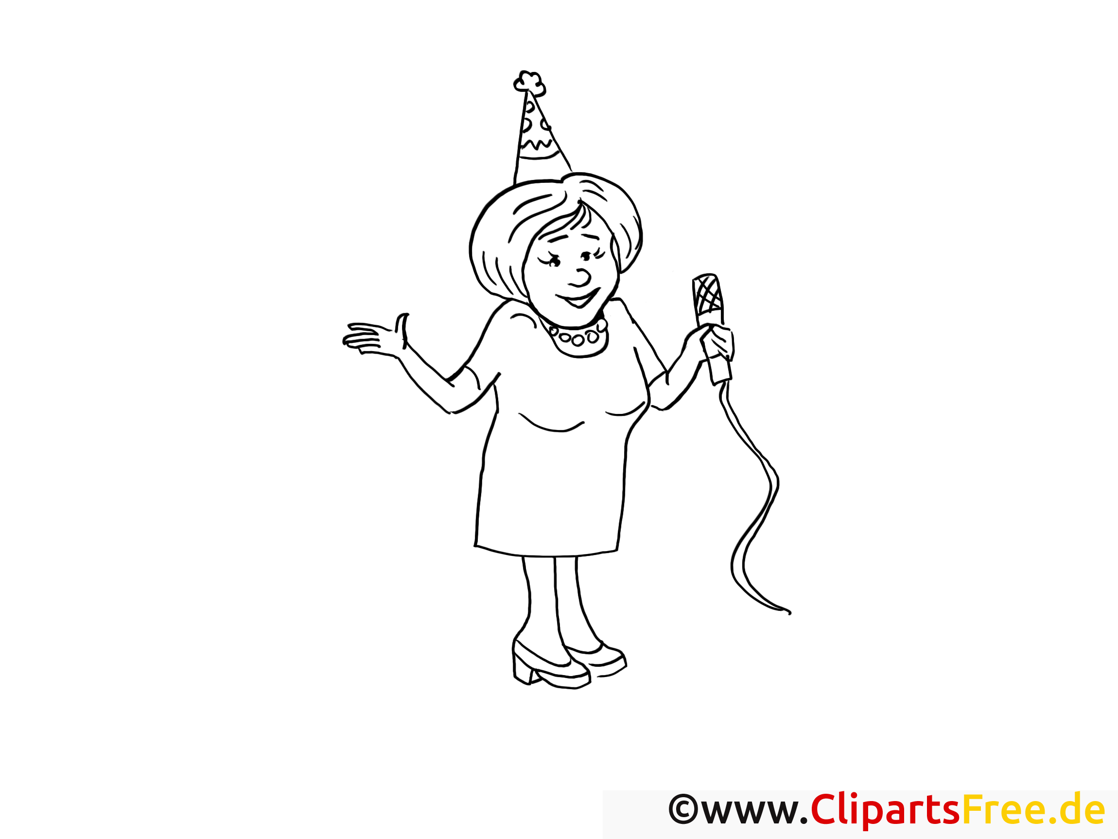 Original-Bild: Kostenfreies Ausmalbild einer fröhlichen Frau im PDF-Format