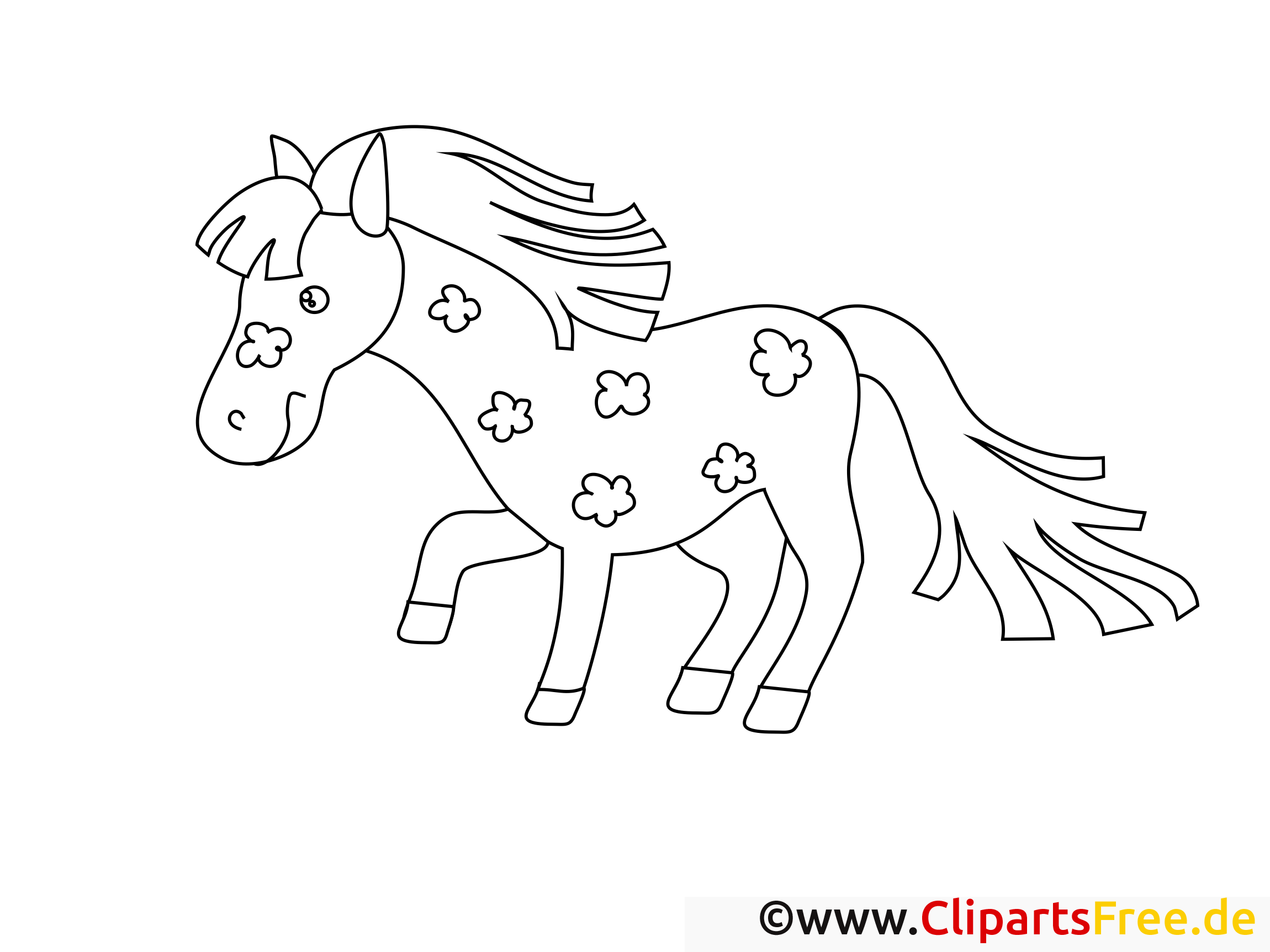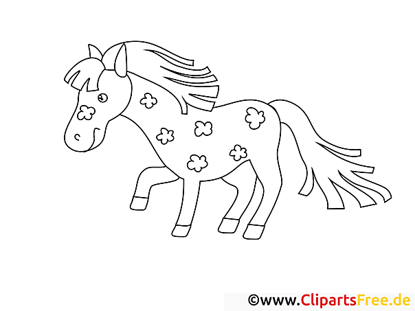 Schau dir mal dieses süße Pony an! Es hat einen fröhlichen Ausdruck und viele kleine Blümchen auf dem Körper. Die langen Mähnenhaare sehen richtig eindrucksvoll aus, als wären sie im Wind. Es wirkt lebendig und einladend, fast so, als würde es gleich einen Schritt nach vorne machen. Die großen Augen erzählen von Neugierde und Freude, genau das richtige für ein Bild zum Ausmalen!