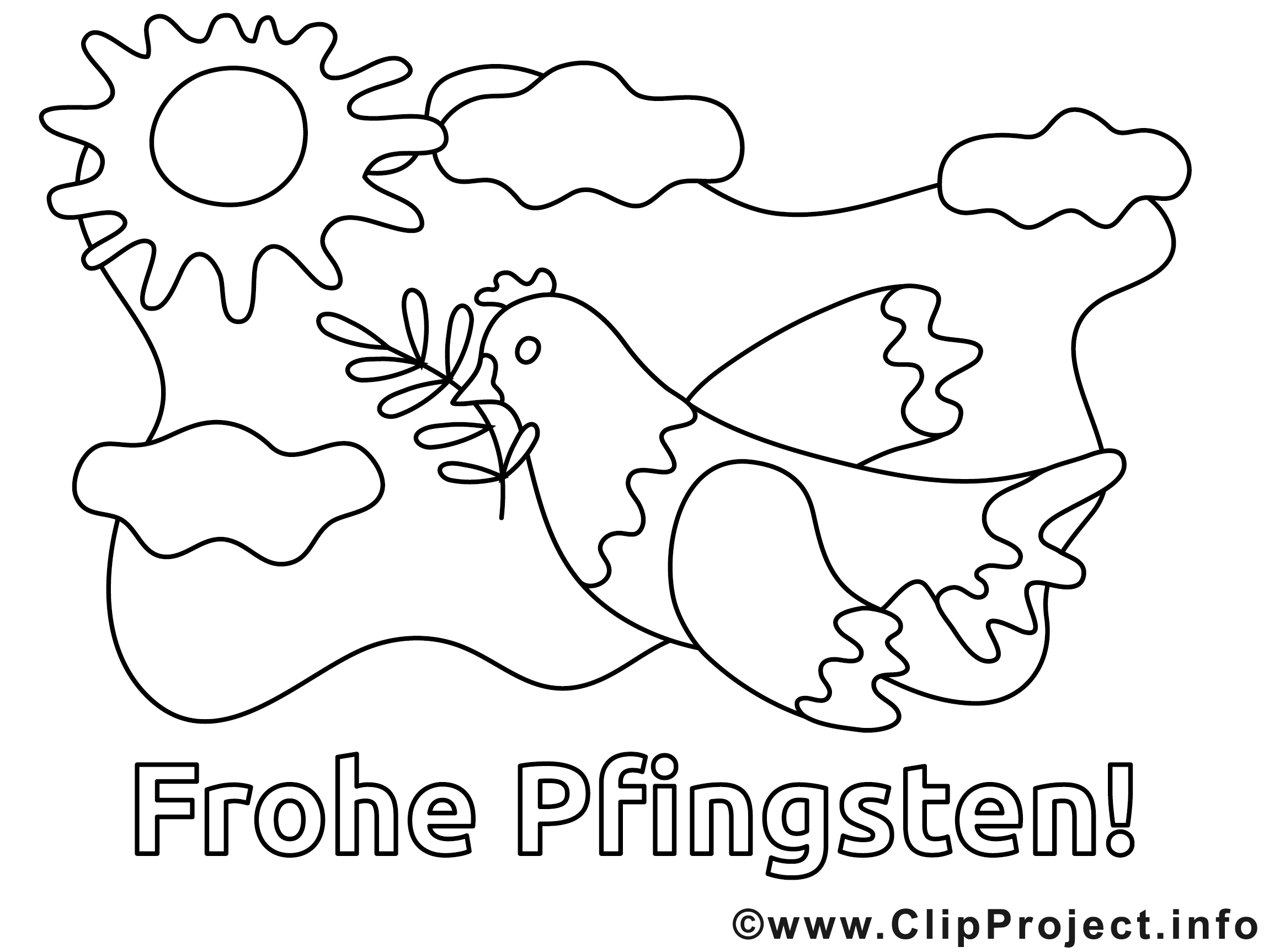 Oh, schau mal! Eine friedliche Taube fliegt durch den Himmel, trägt einen Zweig in ihrem Schnabel. Das Bild strahlt eine fröhliche Atmosphäre aus, mit kleinen Wolken und der Sonne, die strahlend lachen scheint. Ein richtiger Hingucker, besonders jetzt, wo die ersten Blumen blühen und alles nach Frühling riecht. Die aufmerksame Betrachterin oder der aufmerksame Betrachter erkennt sofort, dass hier ein tolles Motiv für die Osterzeit oder Pfingsten ausgewählt wurde. Die Aufschrift „Frohe Pfingsten!“ macht das Bild komplett und lädt zum Mälen ein!