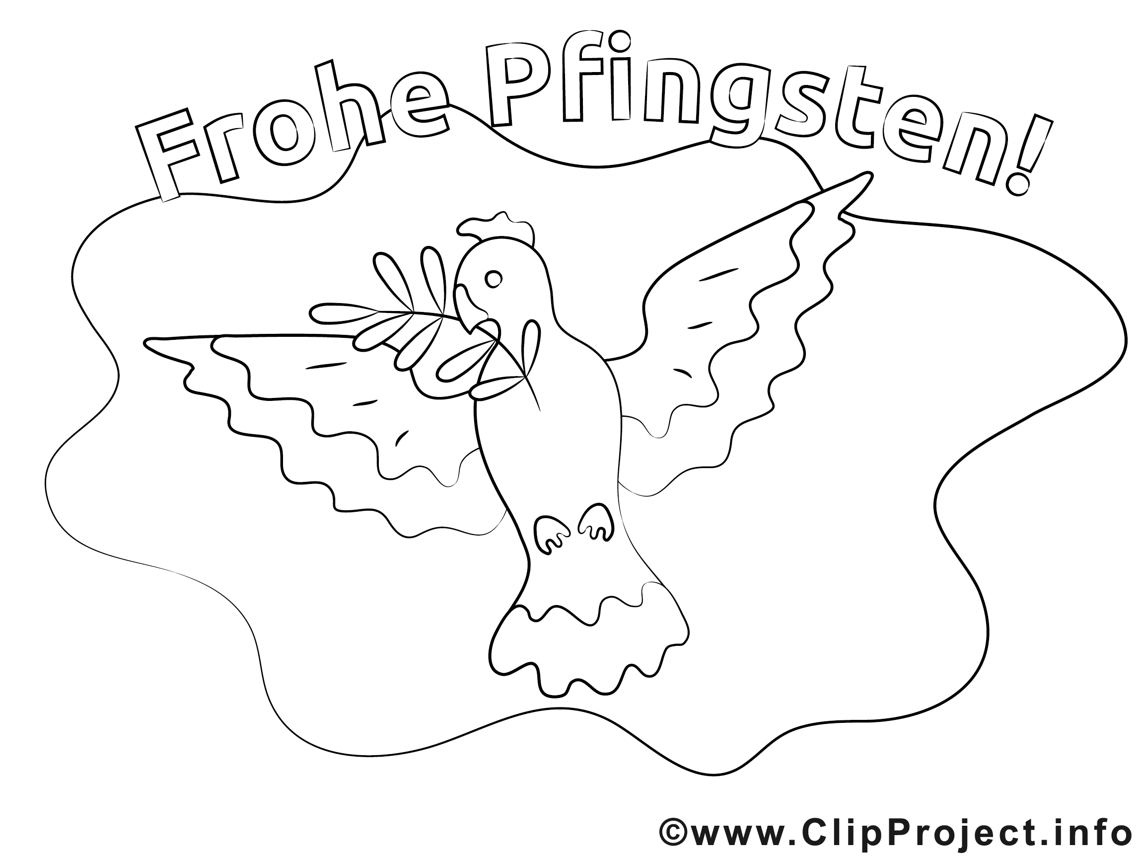 Schau dir dieses süße Malbild an! Dargestellt ist eine hübsche Taube, die ein paar Olivenzweige im Schnabel trägt. Das Bild strahlt eine friedliche und fröhliche Stimmung aus, also perfekt für Pfingsten! Über der Taube steht in großen, klaren Buchstaben „Frohe Pfingsten!“. Man kann fast die gute Laune herausspüren! Wenn man das Bild koloriert, wird es bestimmt ganz bunt und ein echter Hingucker.