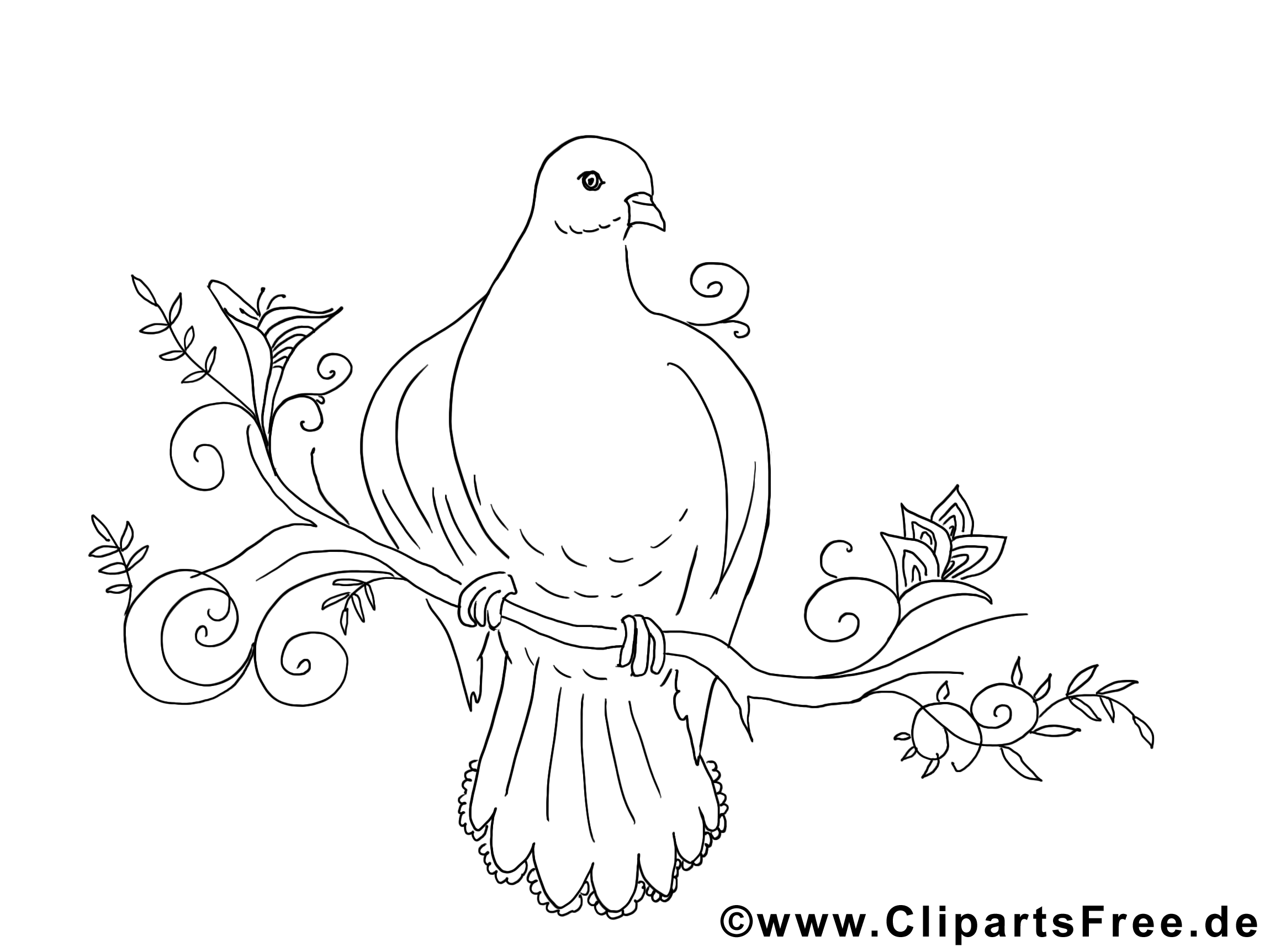 Kostenloses Ausmalbild einer Taube im PDF-Format zum Ausmalen