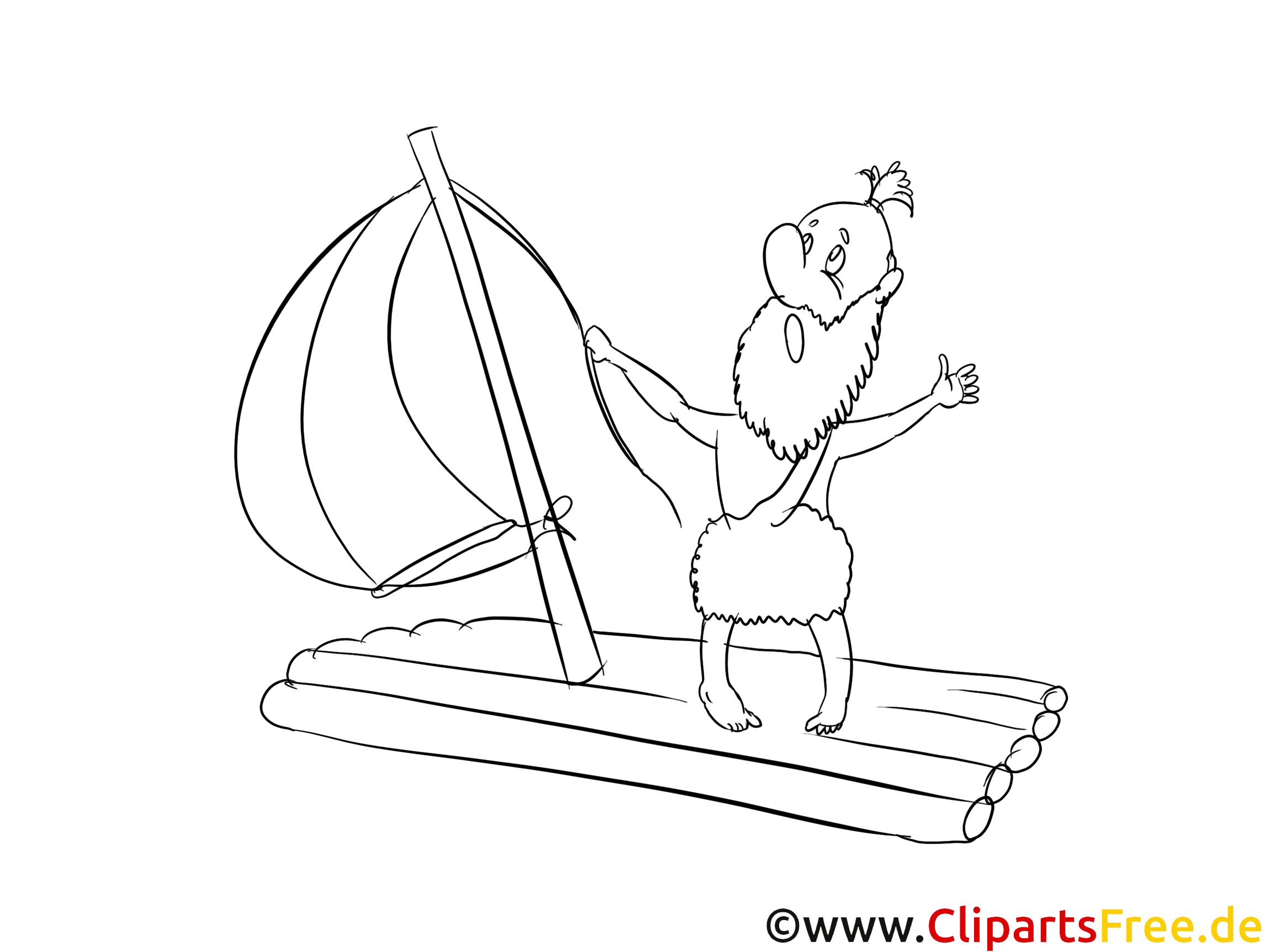 Kostenloses Ausmalbild für Kinder: Abenteuer auf dem Floß PDF
